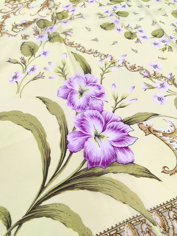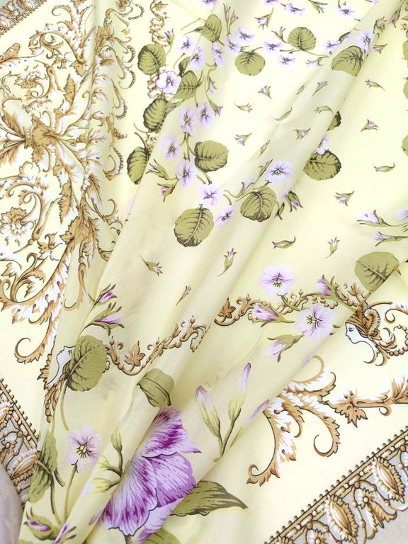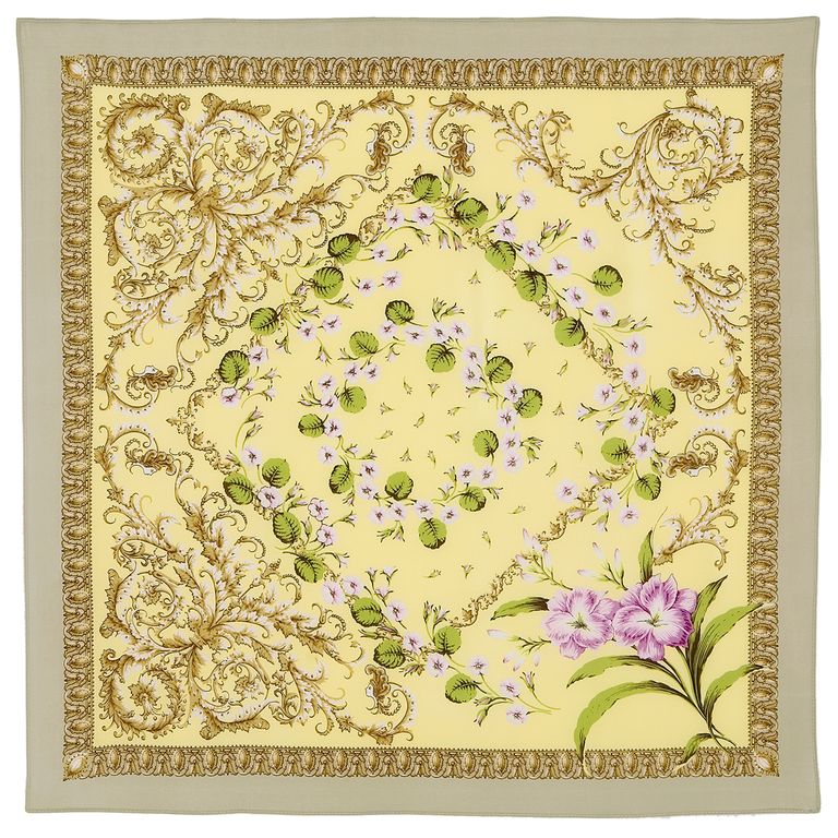 Павловопосадский шёлковый платок "Пармские фиалки" арт. 1382-3 без бахромы