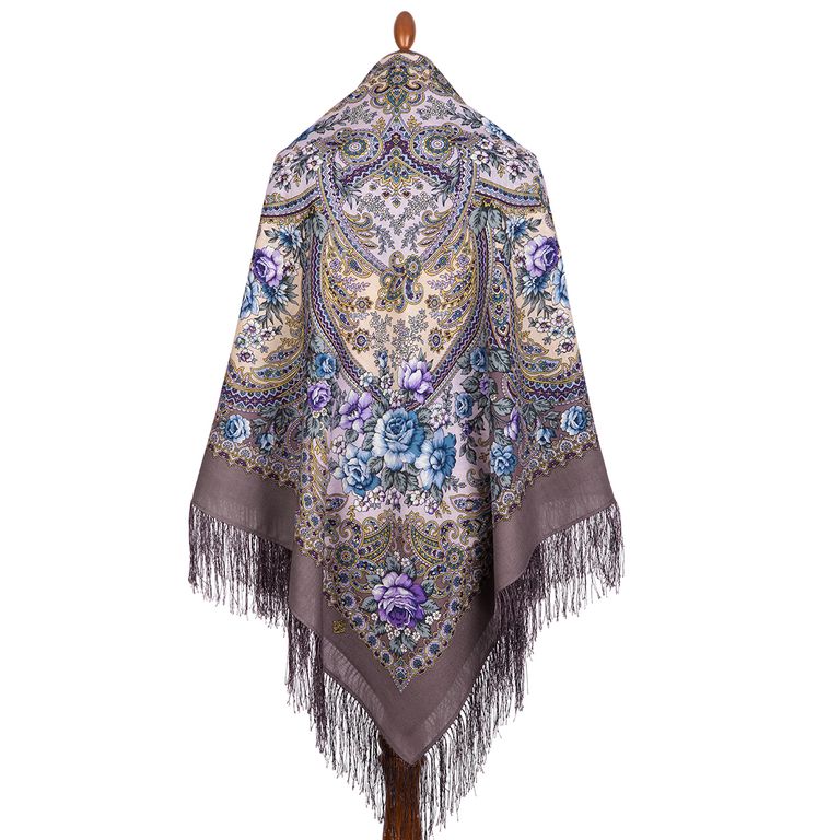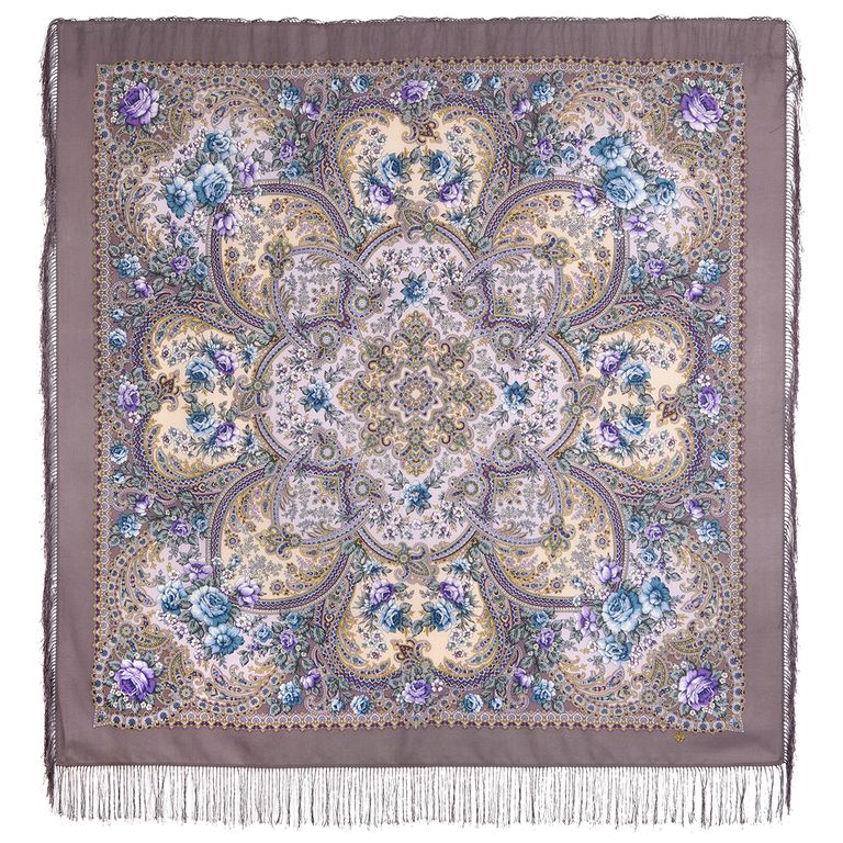 Павловопосадский шерстяной платок "Музыка моря" 1755-1, с шёлковой бахромой