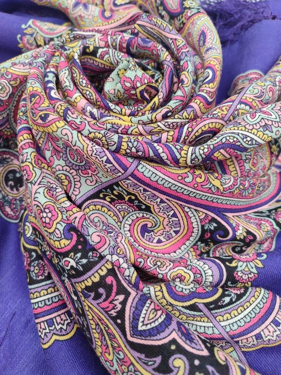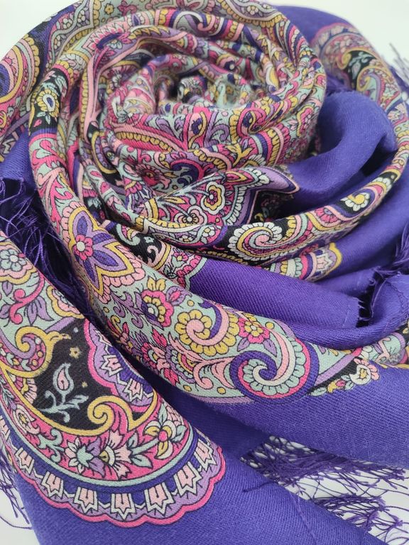 Павловопосадский шерстяной платок "Поцелуй русалки" арт. 1928-15, с шёлковой бахромой