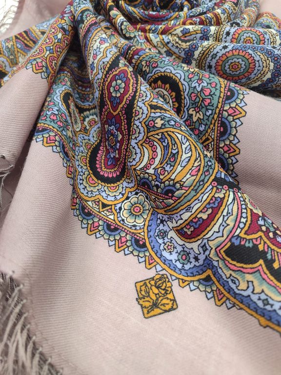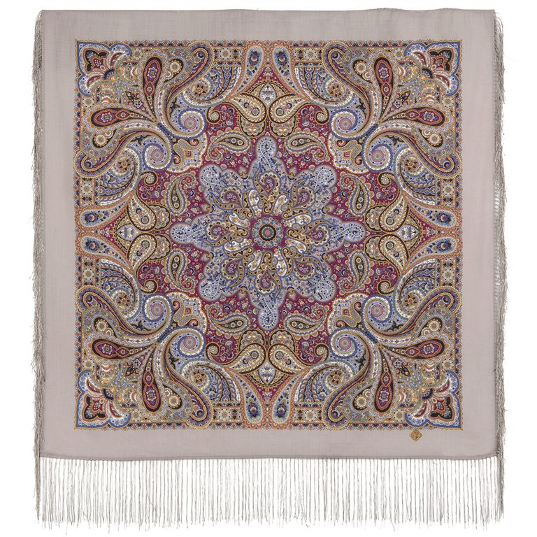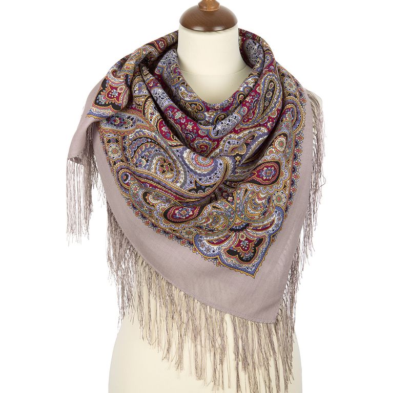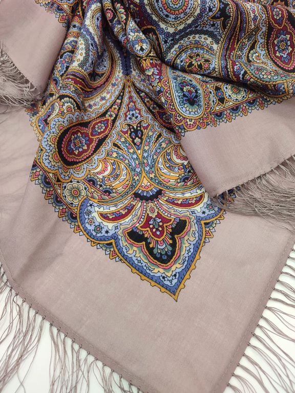 Павловопосадский шерстяной платок "Горожанка" арт. 1836-2, с шёлковой бахромой