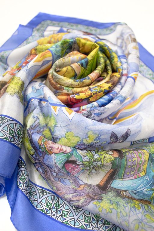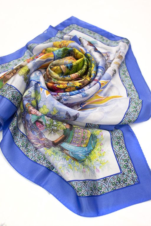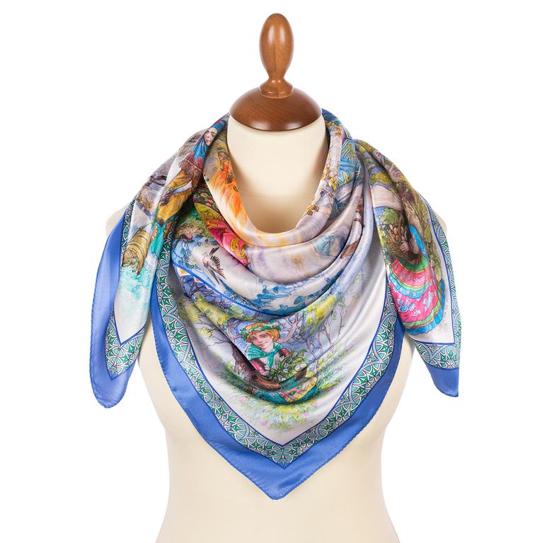 Павловопосадский шёлковый платок "Двенадцать месяцев" 10787-13 без бахромы