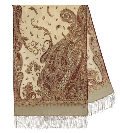 Павловопосадский шерстяной палантин Тысяча и одна ночь 1558-51, с шёлковой бахромой
