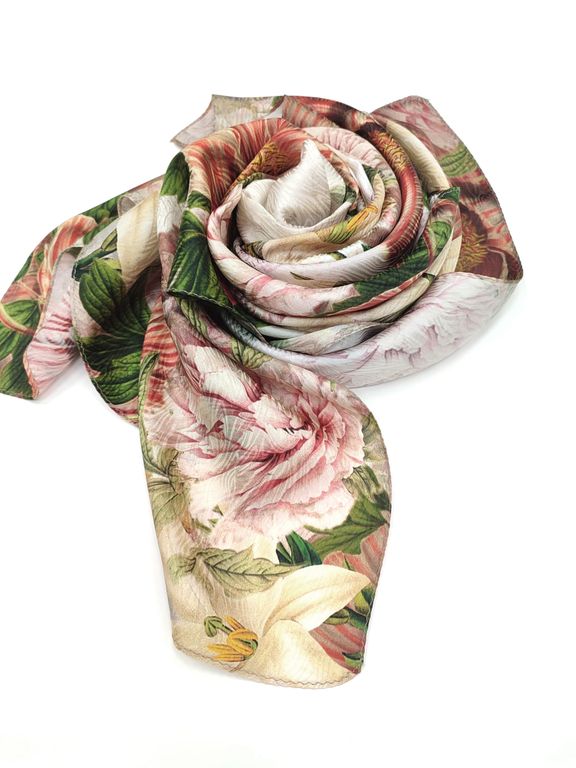 Павловопосадский шёлковый платок (жаккард) арт. 10266-2 без бахромы