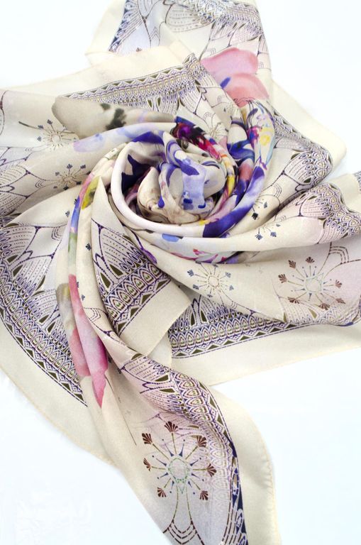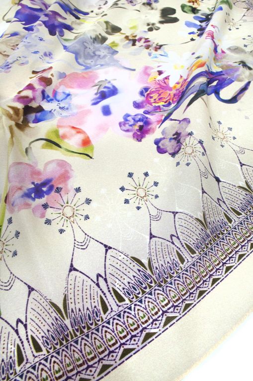 Павловопосадский шёлковый платок арт. 11018-2 без бахромы
