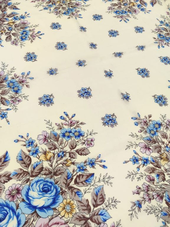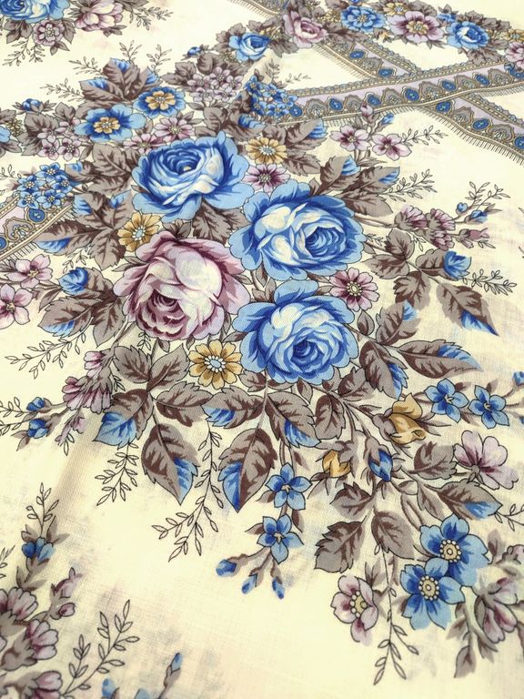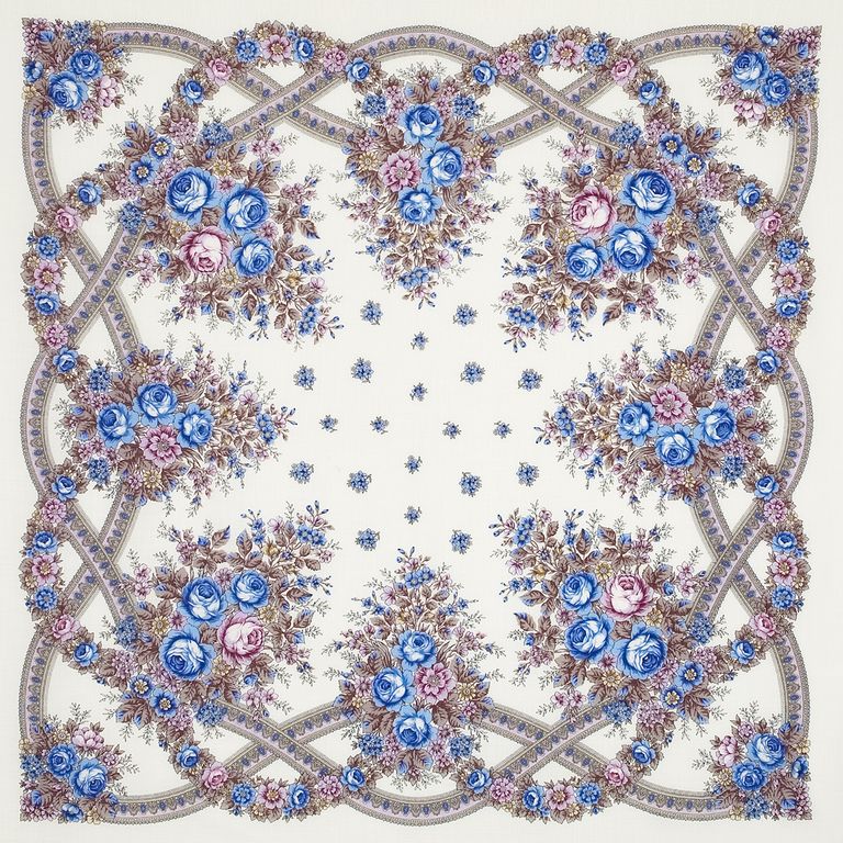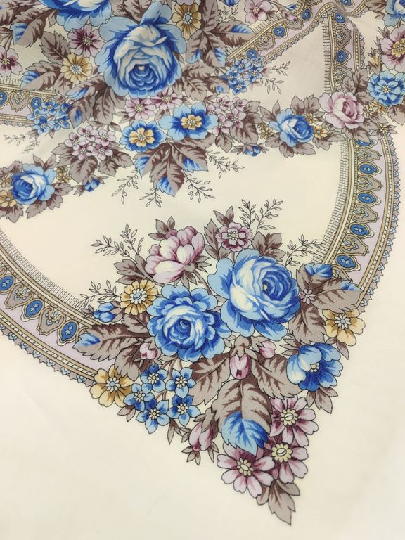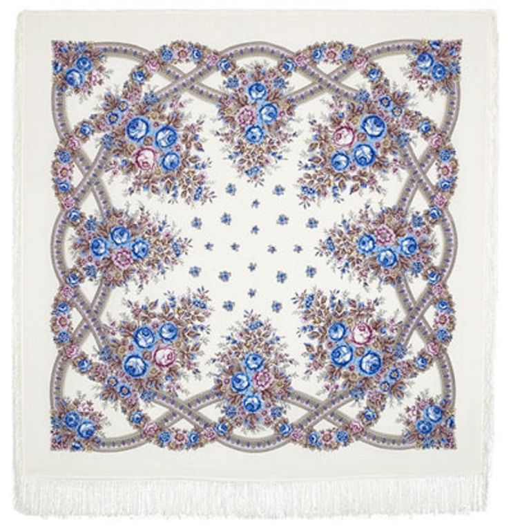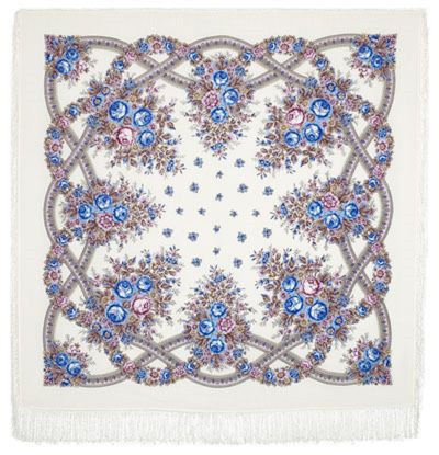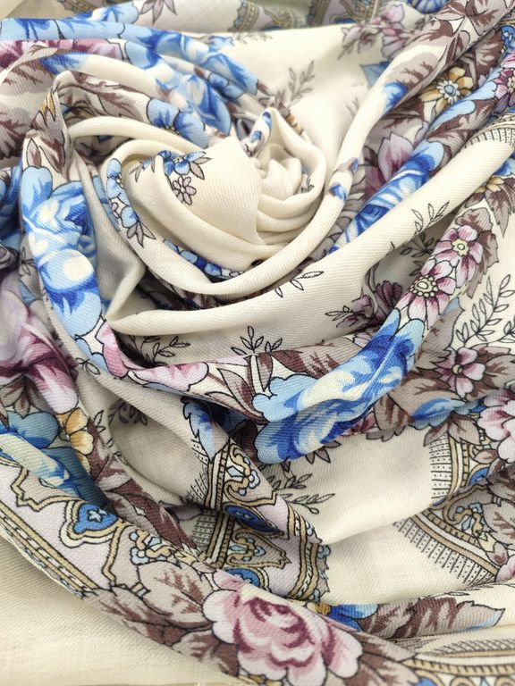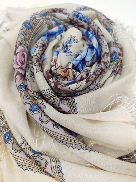 Павловопосадский шерстяной платок "Аромат лета" 1432-2, с шелковой бахромой