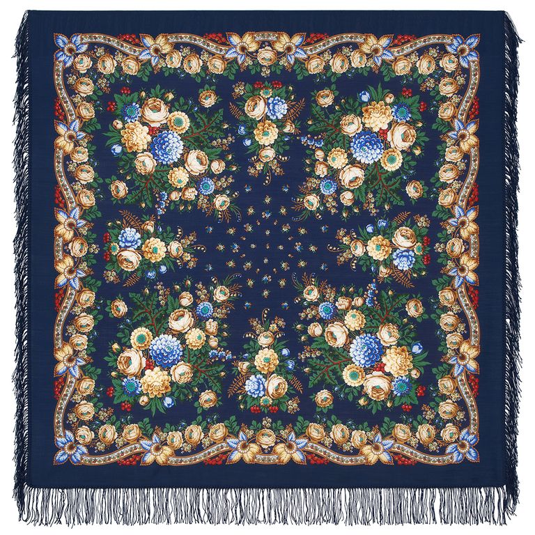 Павловопосадский шерстяной платок "Черные глаза" арт 1194-14, с шёлковой бахромой