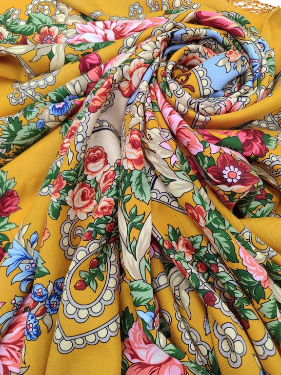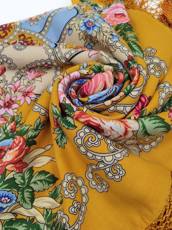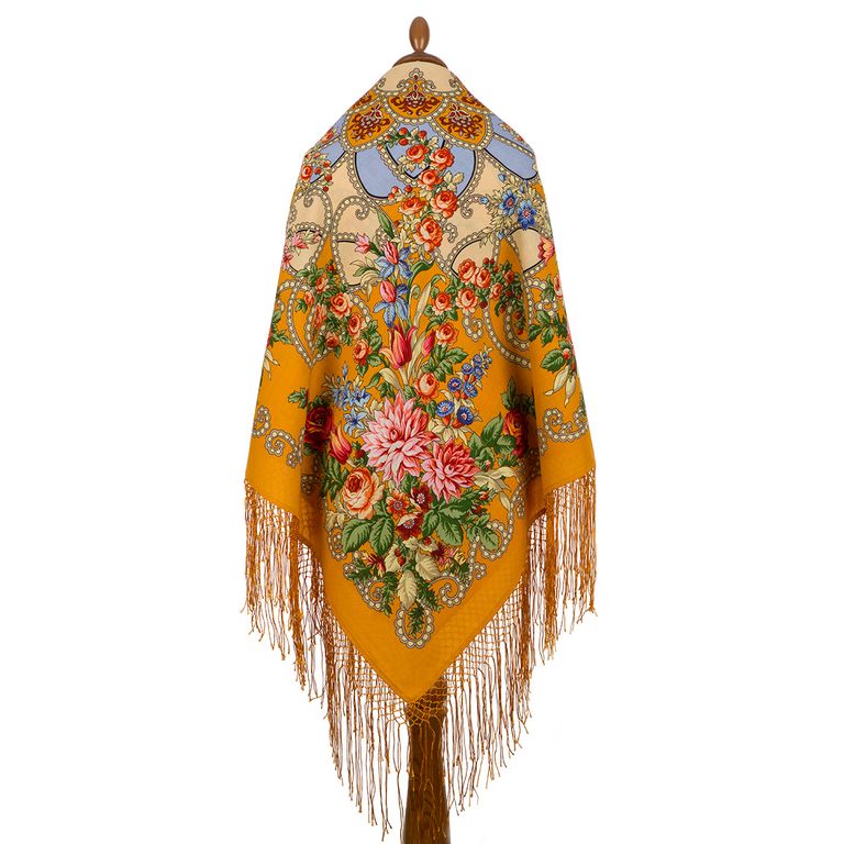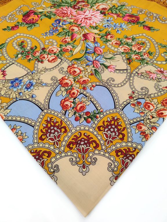 Павловопосадская шерстяная шаль "Цыганка Аза" 362-2, (многоцветная)