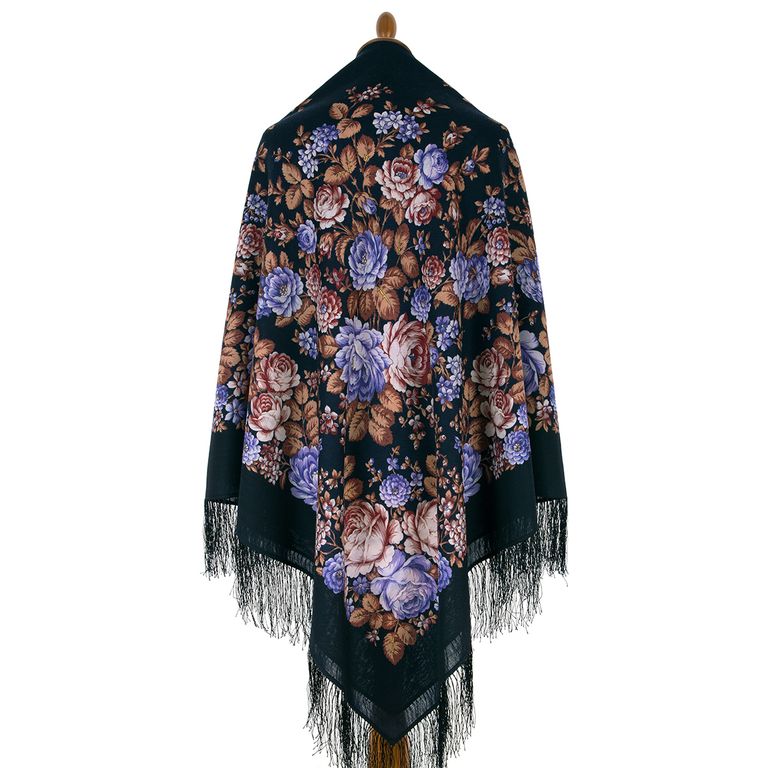 Павловопосадский шерстяной платок "Цветочная сказка" 1458-14, с шелковой бахромой