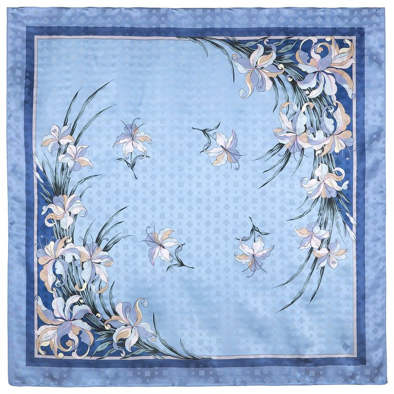 Павловопосадский шёлковый платок (жаккард) "Дуновение" арт. с без бахромы