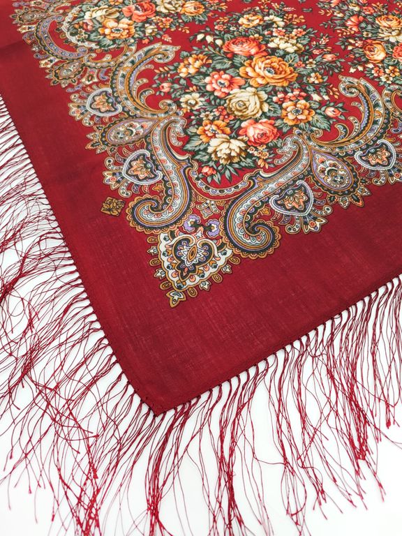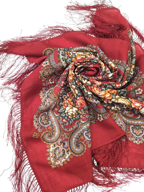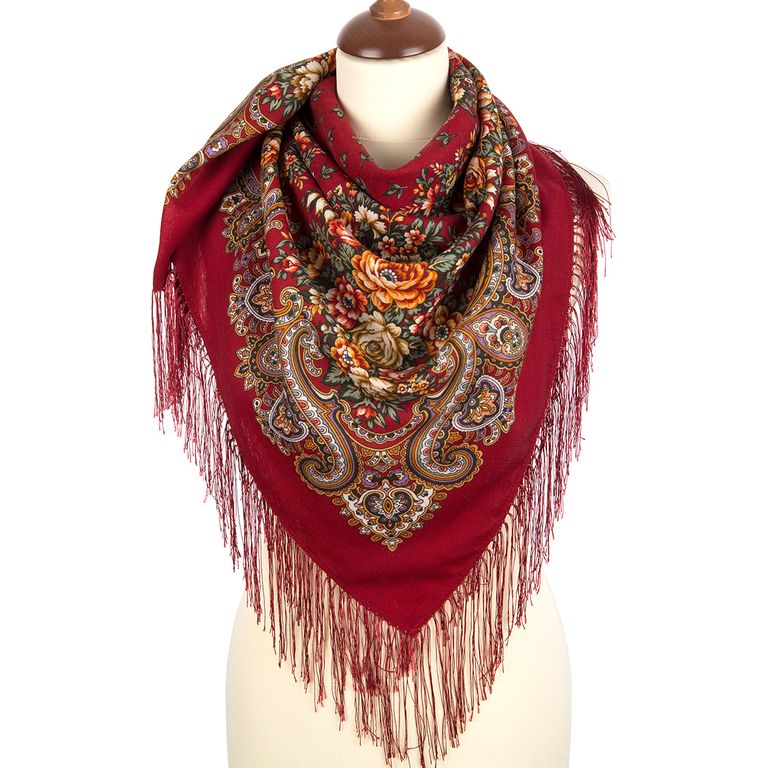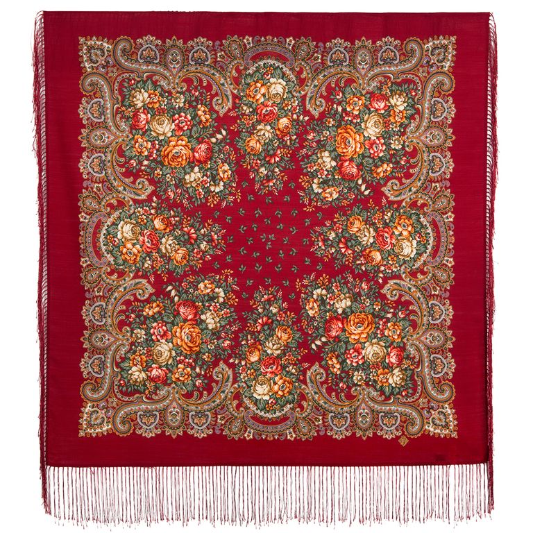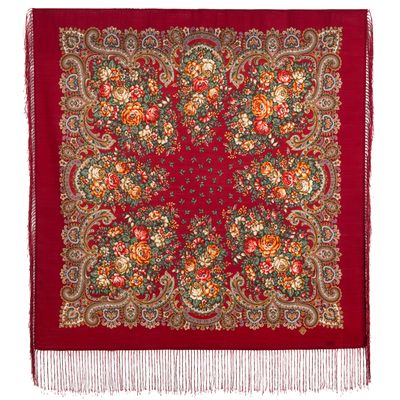 Павловопосадский шерстяной платок "Душистый луг" арт. 1830-5, с шелковой бахромой