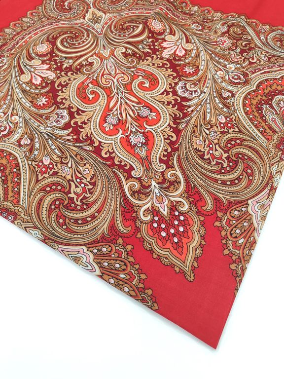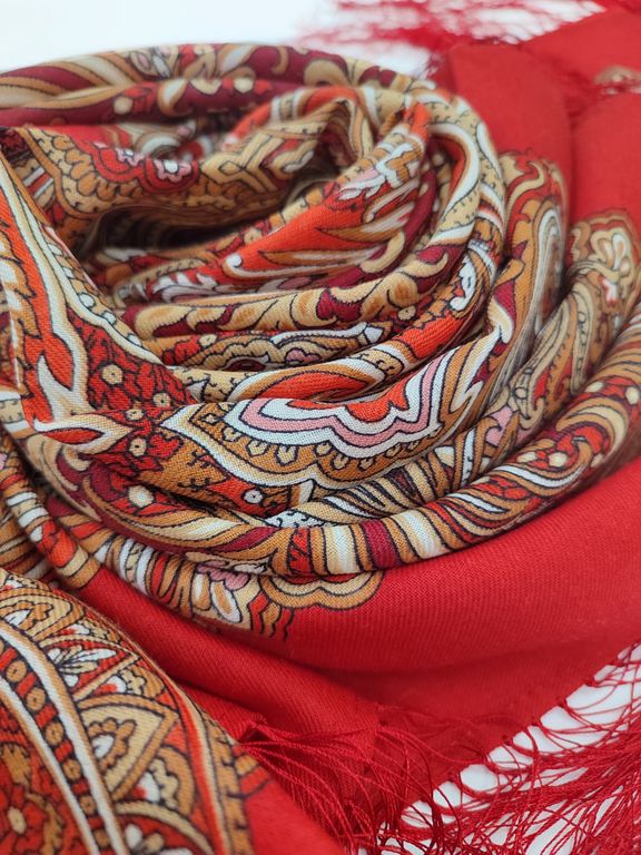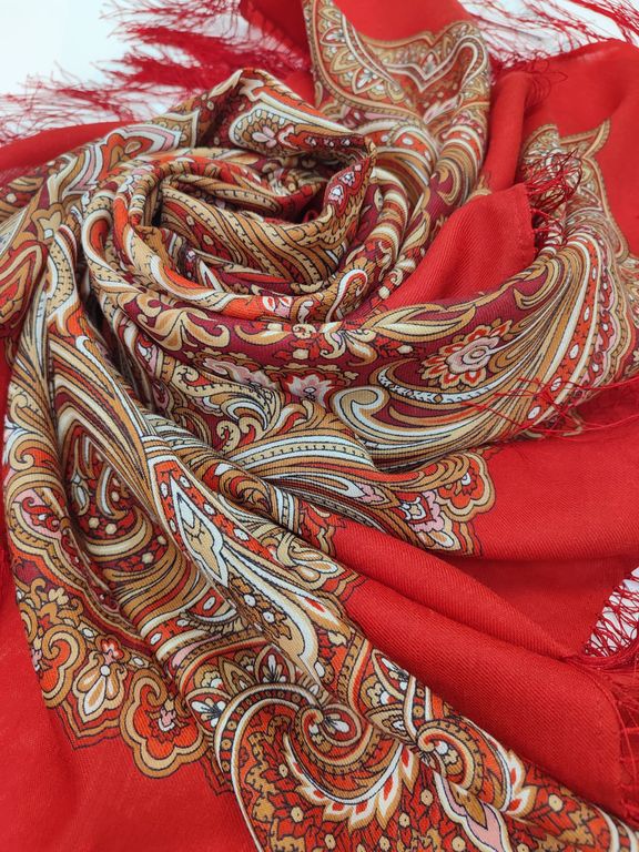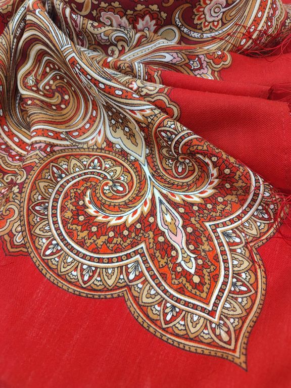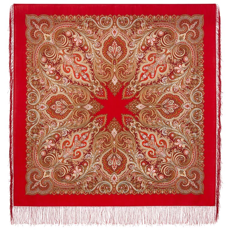 Павловопосадский шерстяной платок "Февраль " 715-5, с шёлковой бахромой