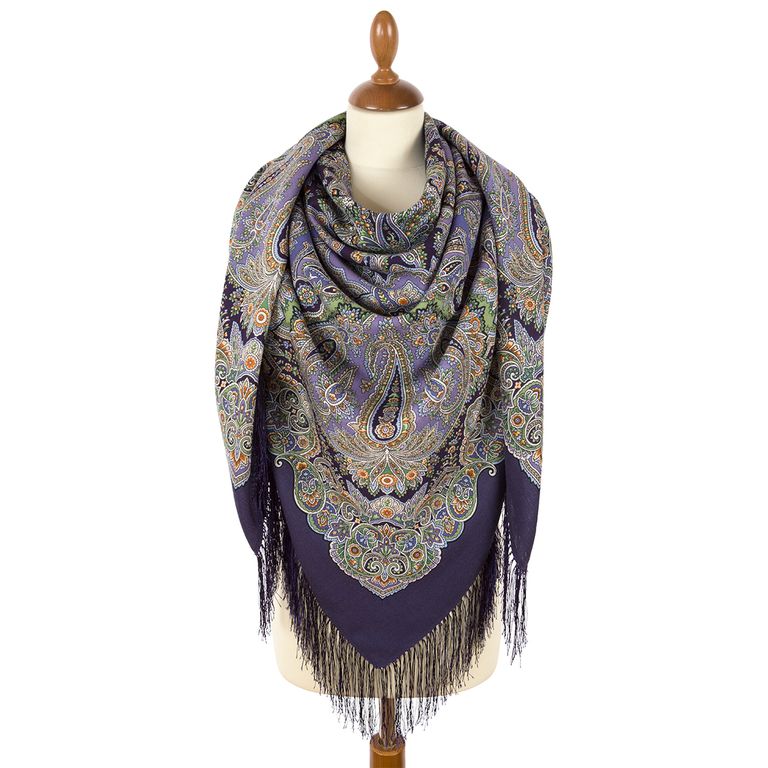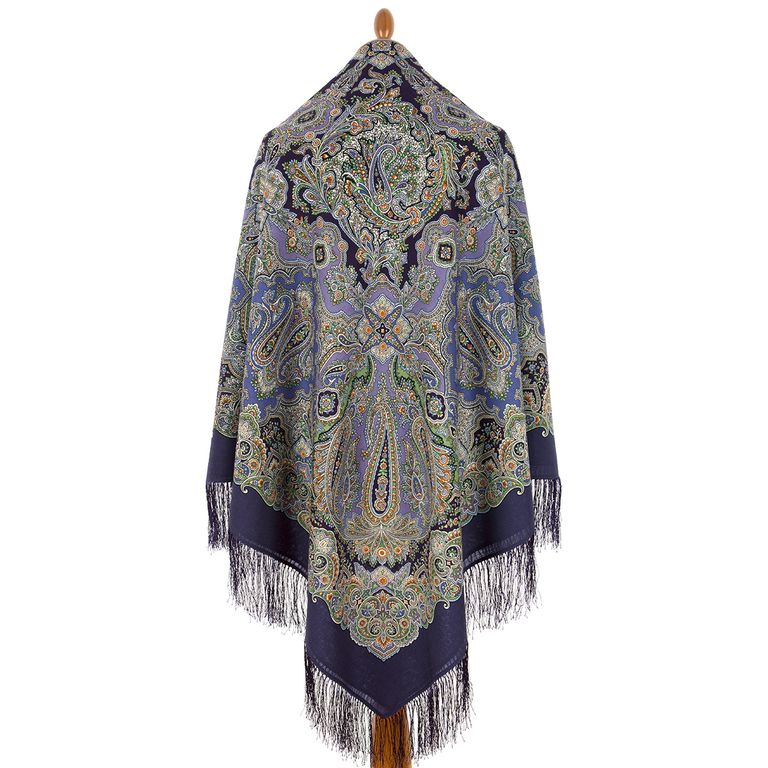 Павловопосадский шерстяной платок "Колдовская ночь" арт. 1934-15, с шелковой бахромой