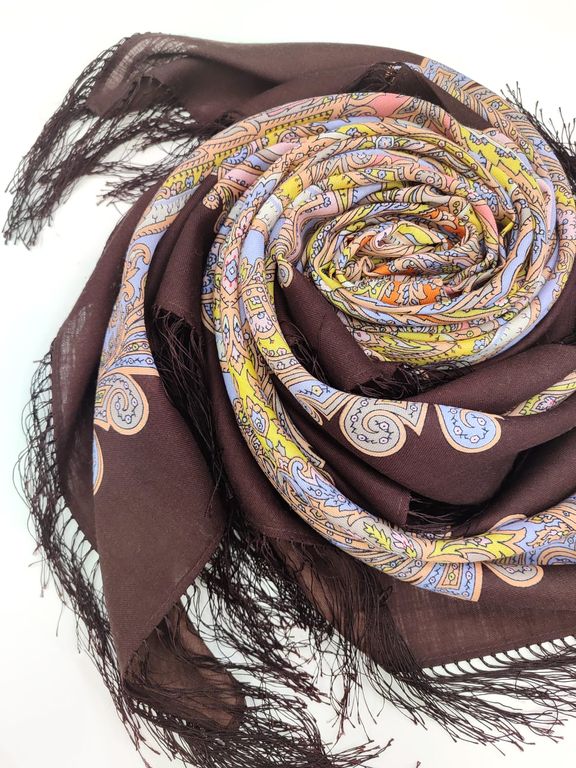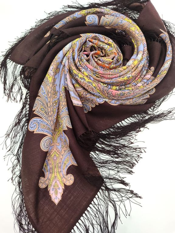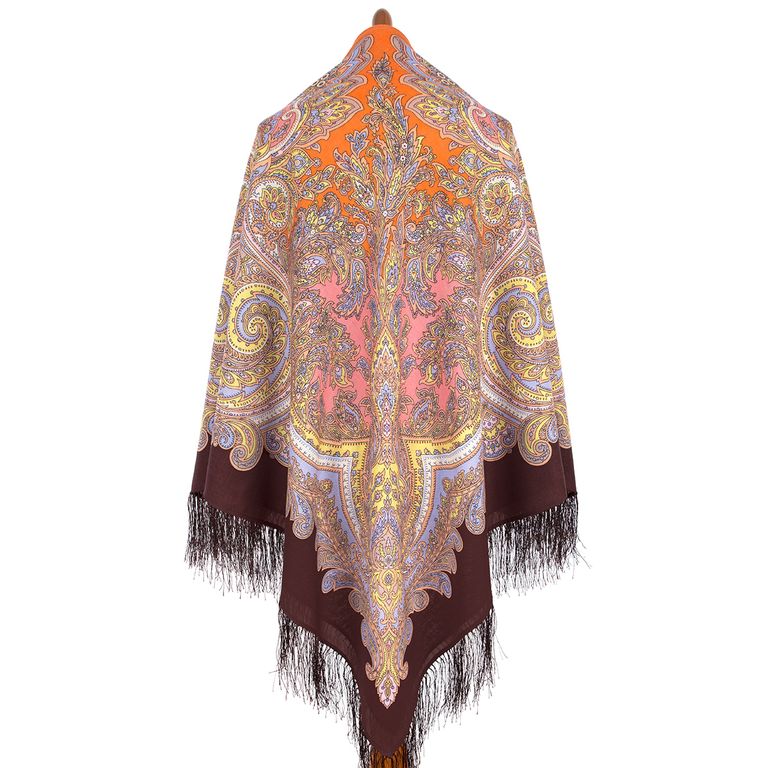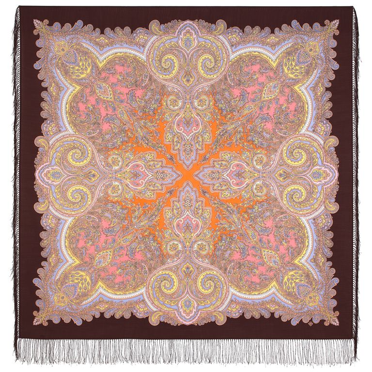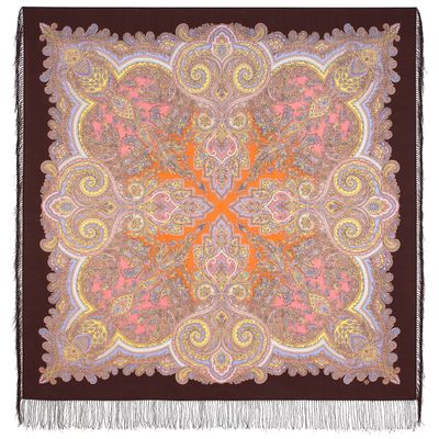 Павловопосадский шерстяной платок Коралловая сказка 1916-16 с шелковой бахромой