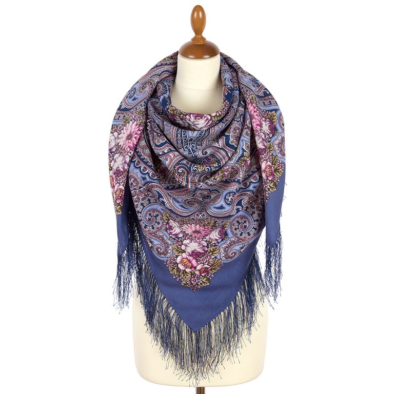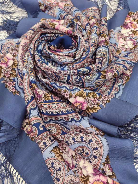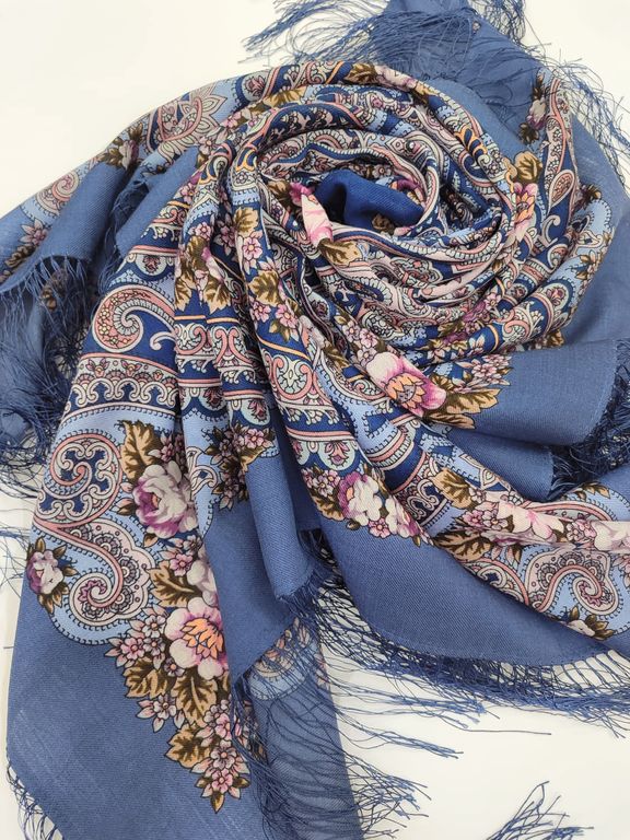 Павловопосадский шерстяной платок с шелковой бахромой "Летний хоровод" арт. 2034-1