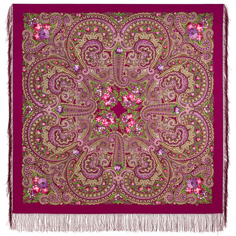 Павловопосадский шерстяной платок с шелковой бахромой "Летний хоровод" арт. 2034-6