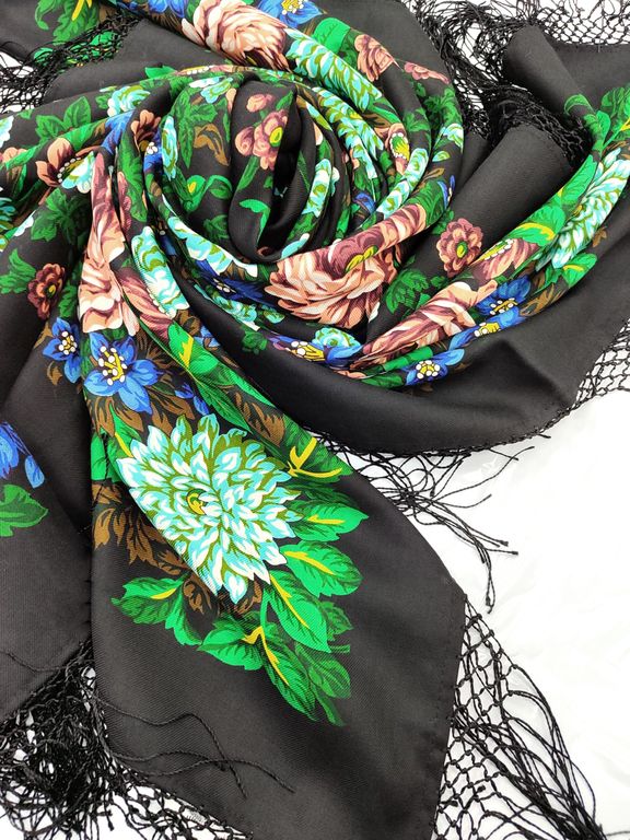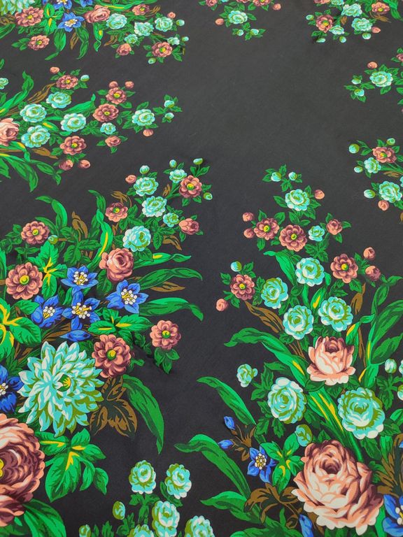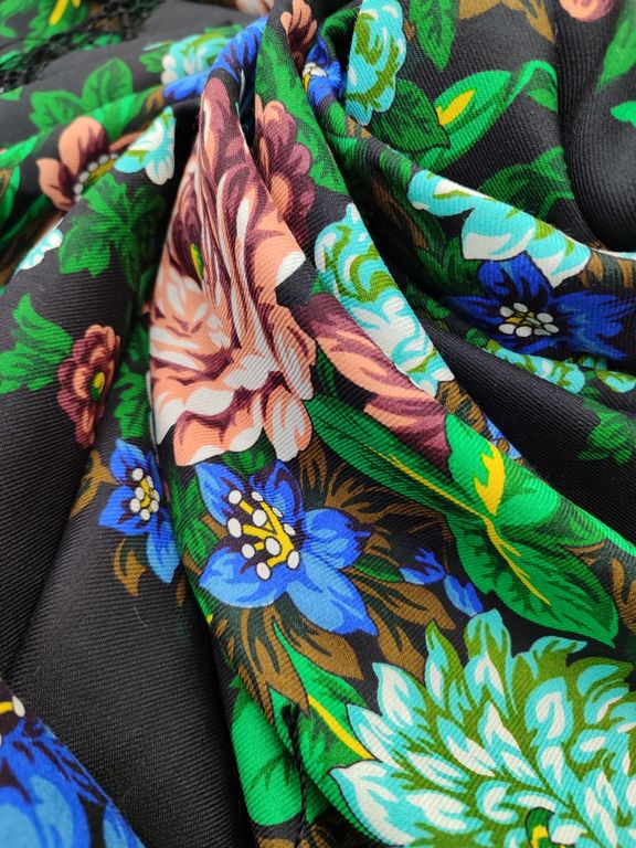 Данное изделие открывает нашу новую линейку - линию коллекционных платков. Выпуск таких изделий рассчитан в первую очередь на коллекционеров и знатоков павловопосадского промысла, которым могут быть интересны уникальные платки, давно снятые с производства или совсем ранее не выпускавшиеся.
