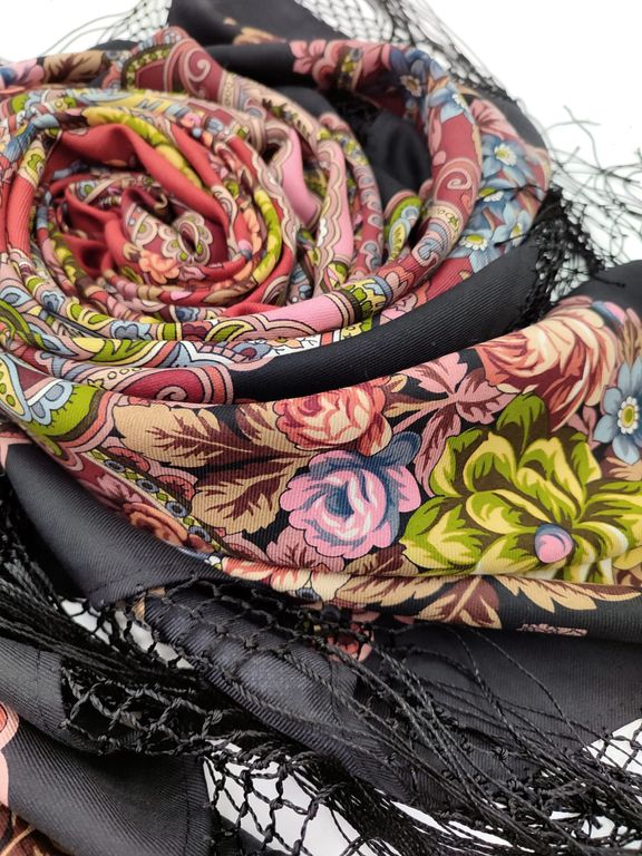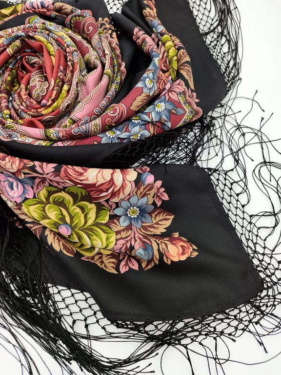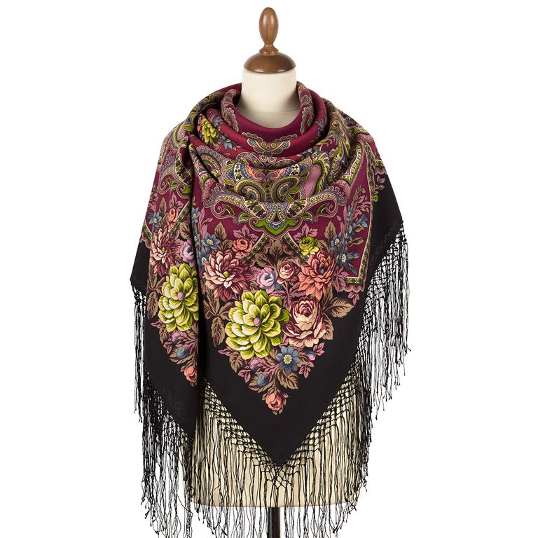 Павловопосадская шерстяная шаль "Майя" 372-19, (многоцветная)