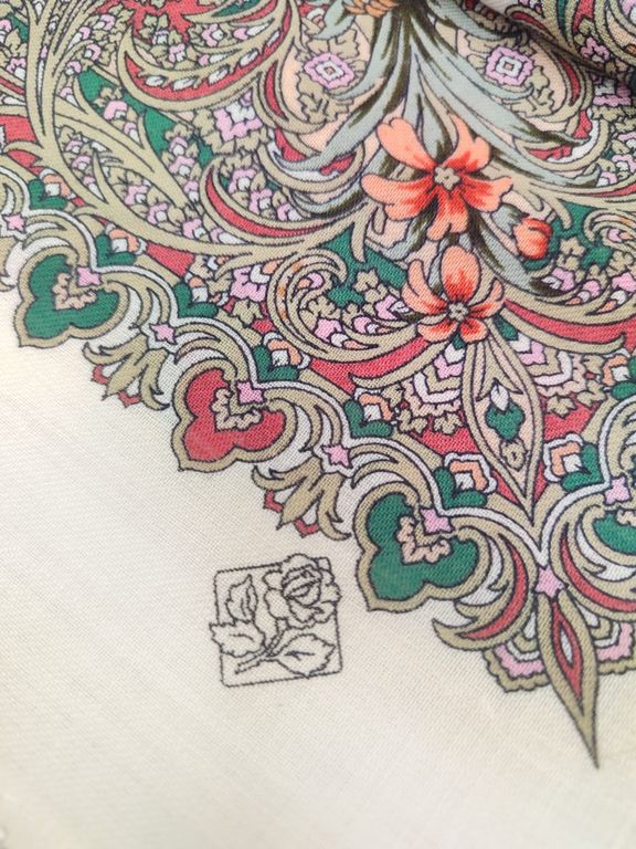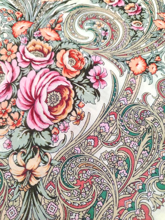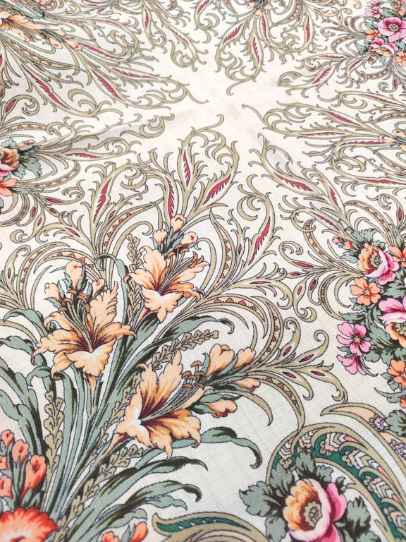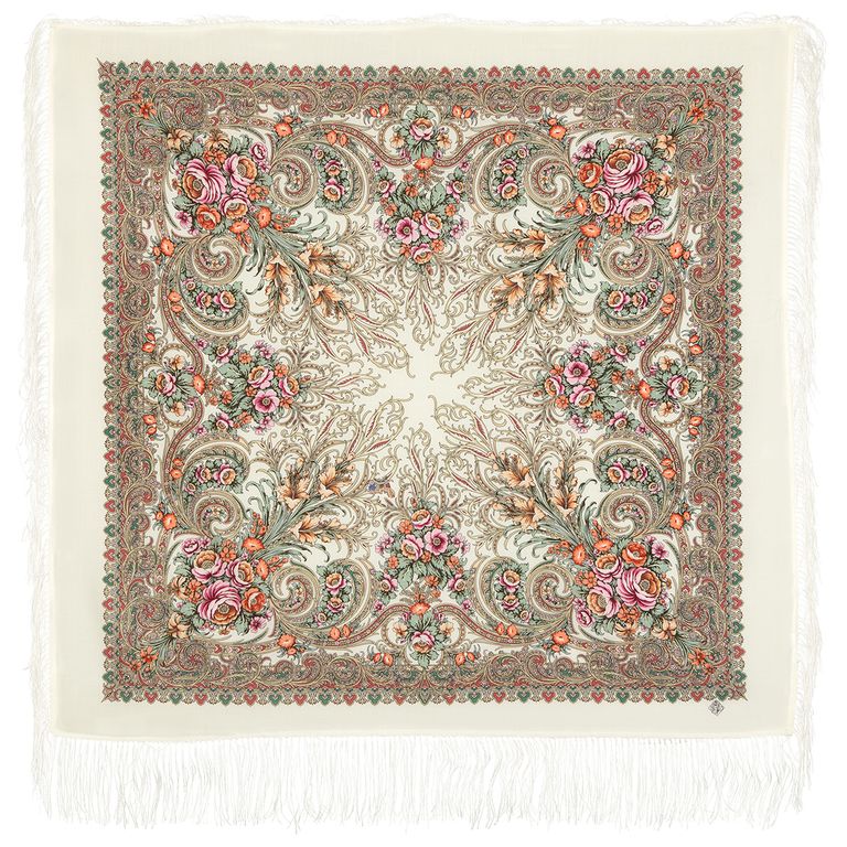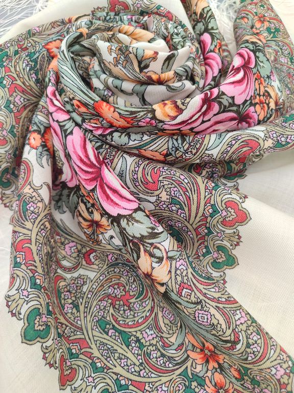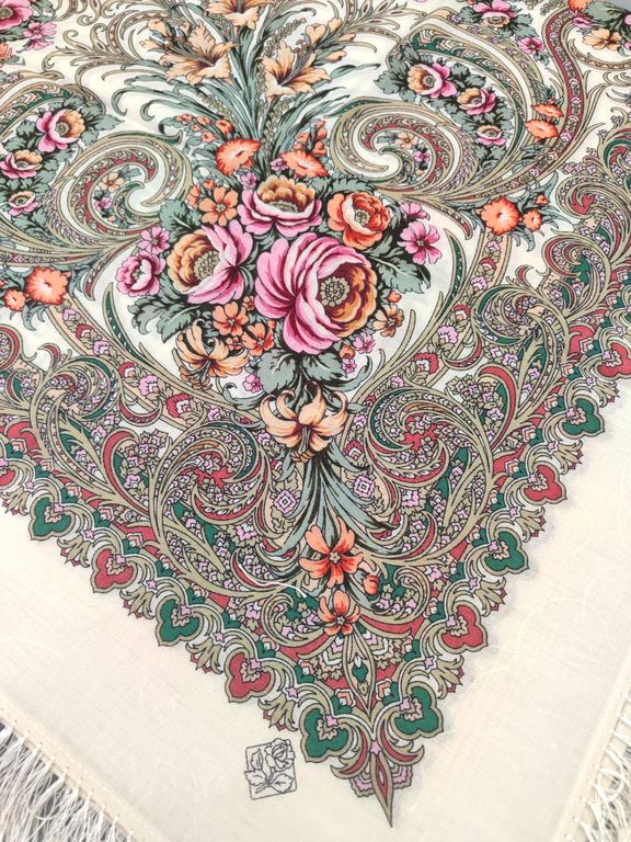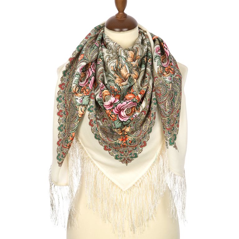 Павловопосадский шерстяной платок с шёлковой бахромой "Март" 904-3