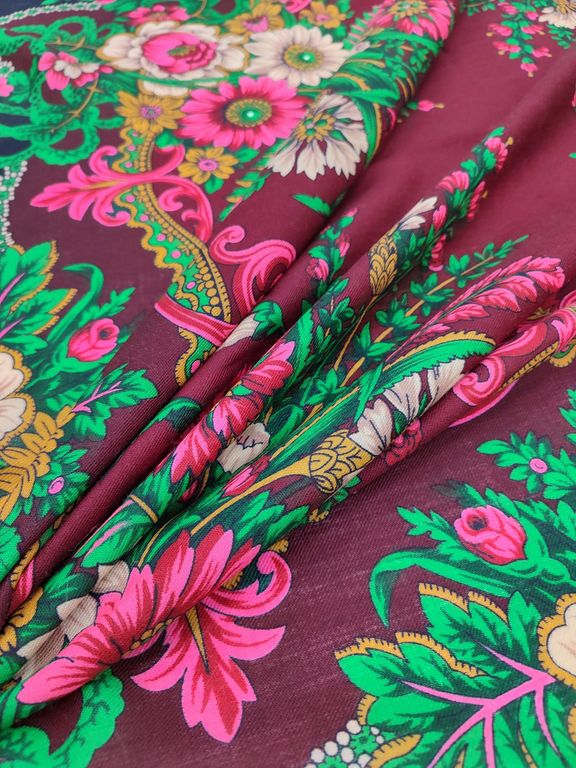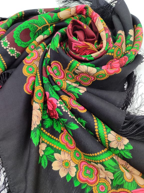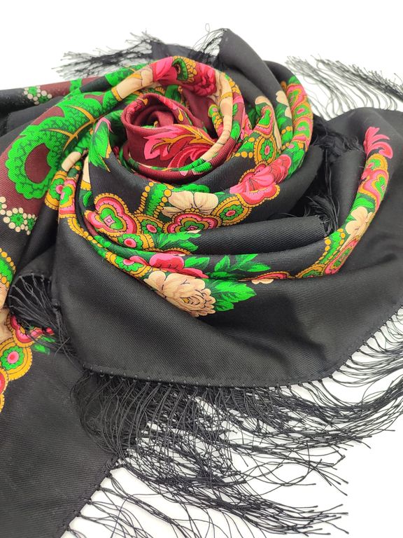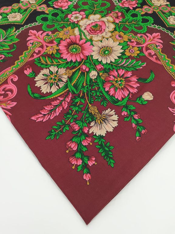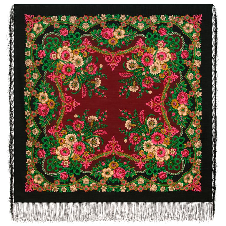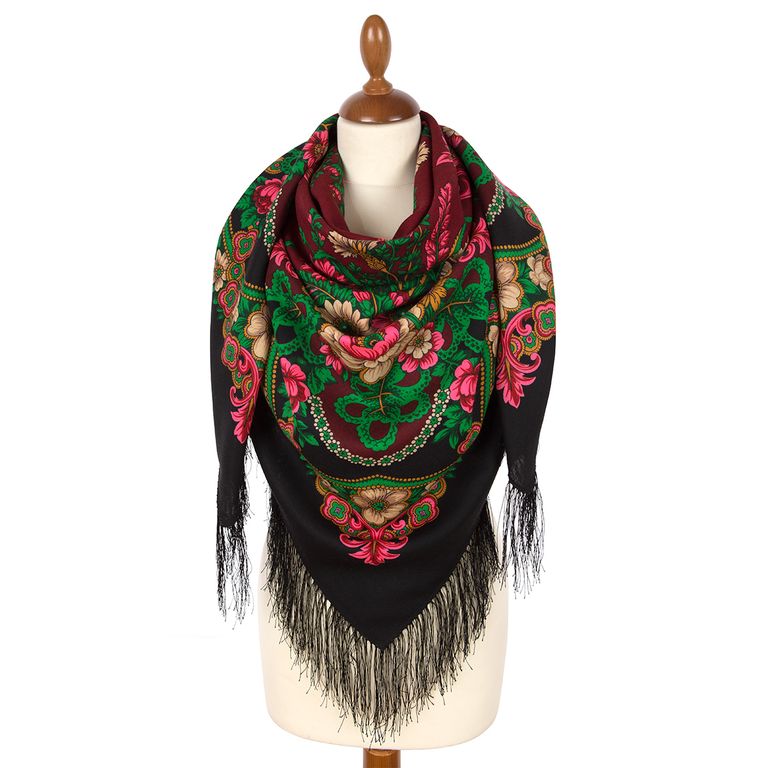 Павловопосадский шерстяной платок "Ностальгия" 573-18, с шелковой бахромой