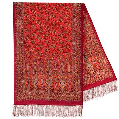 Павловопосадский шерстяной палантин "Обольщение" арт. 1338-55, с шёлковой бахромой