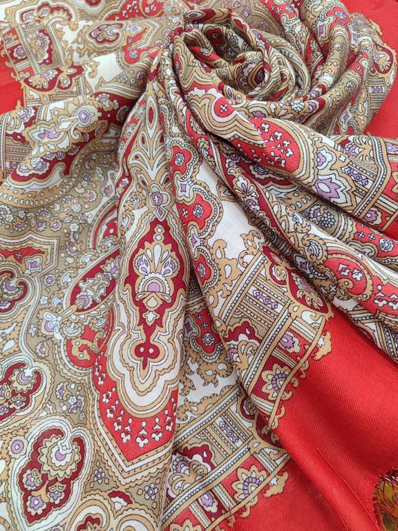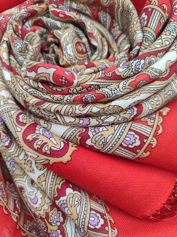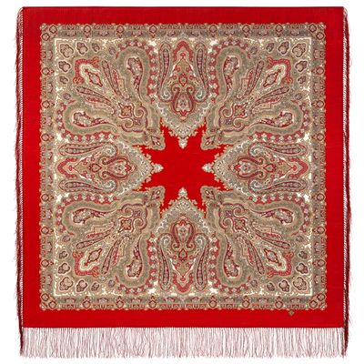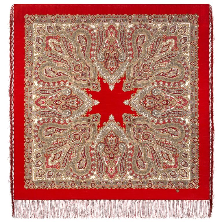 Павловопосадский шерстяной платок с шелковой бахромой "Ольга Лабзина" 1008-5