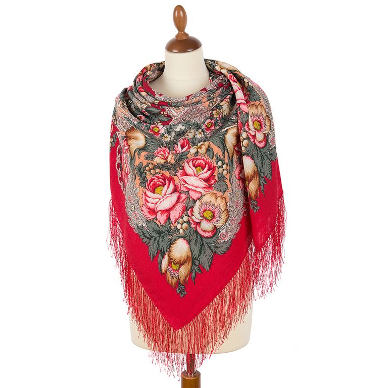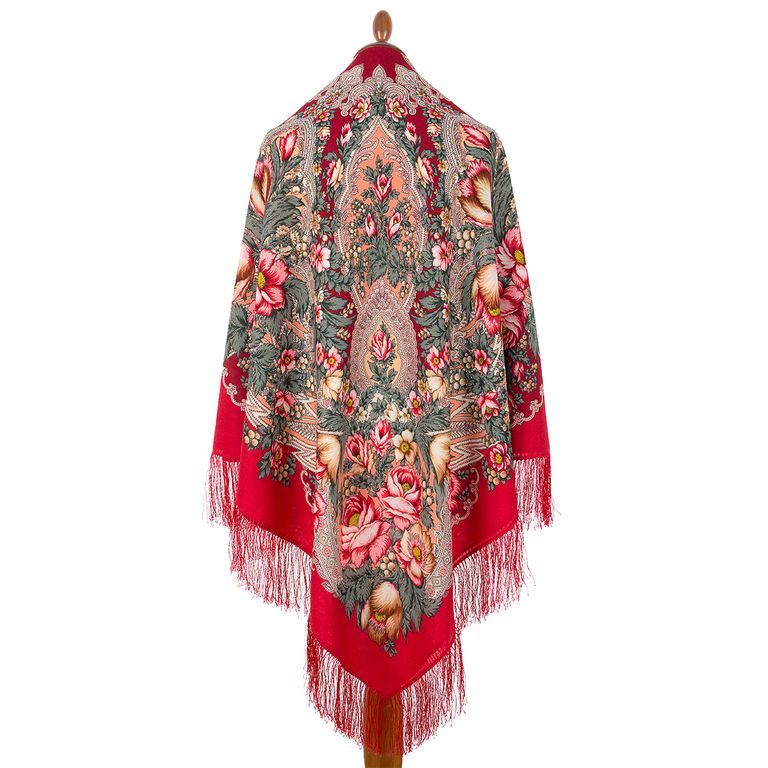 Павловопосадский шерстяной платок "Песня сказочного леса" 1880-5, с шелковой бахромой