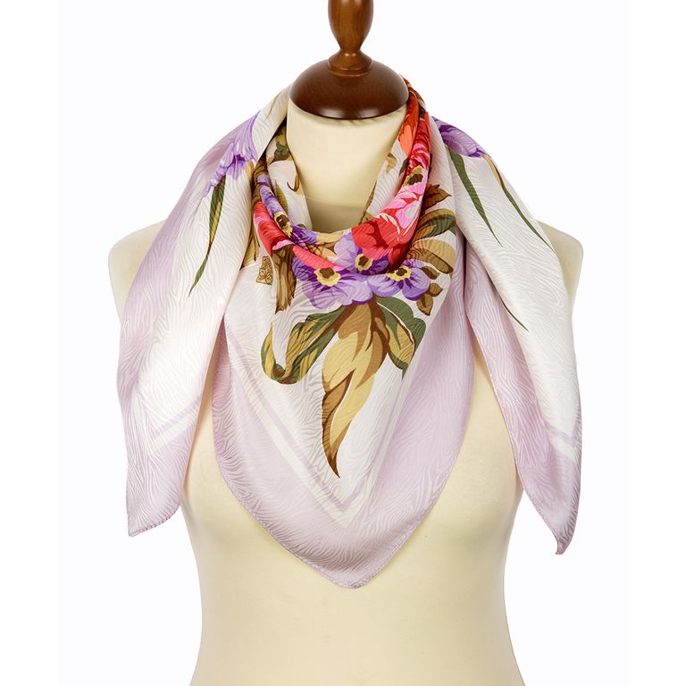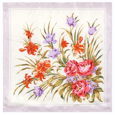 Павловопосадский шёлковый платок (жаккард) арт. 1709-3 без бахромы