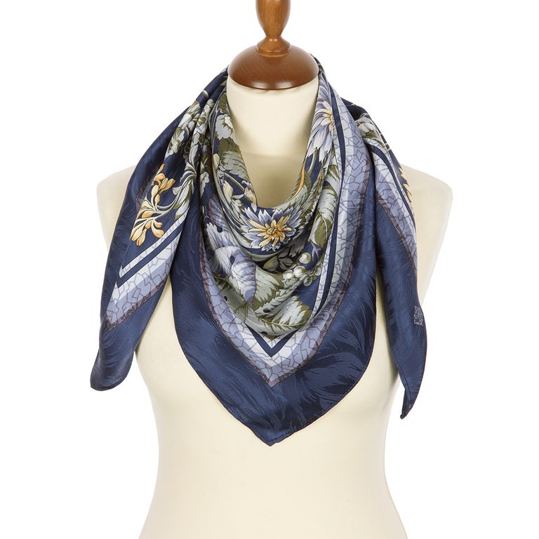 Павловопосадский шёлковый платок (жаккард) арт. 716-14 без бахромы