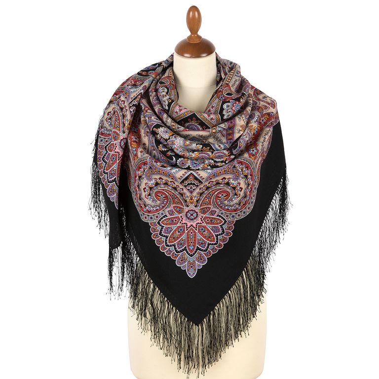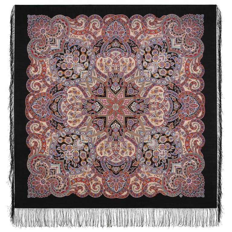 Павловопосадский шерстяной платок "Праздничный город" 1921-18, с шёлковой бахромой