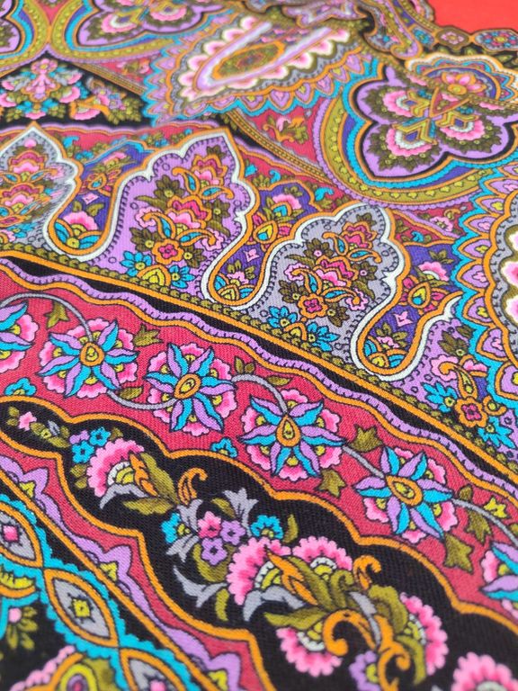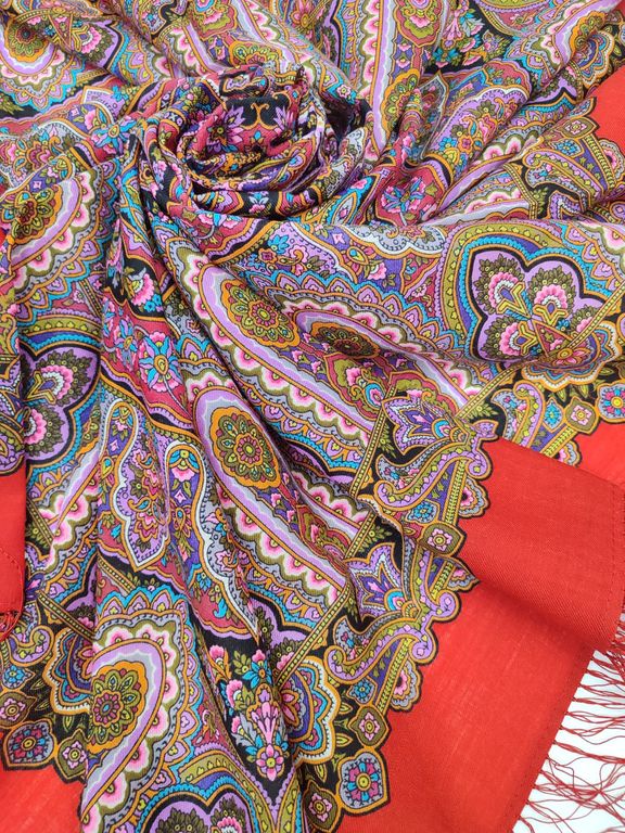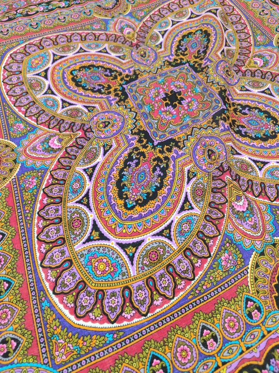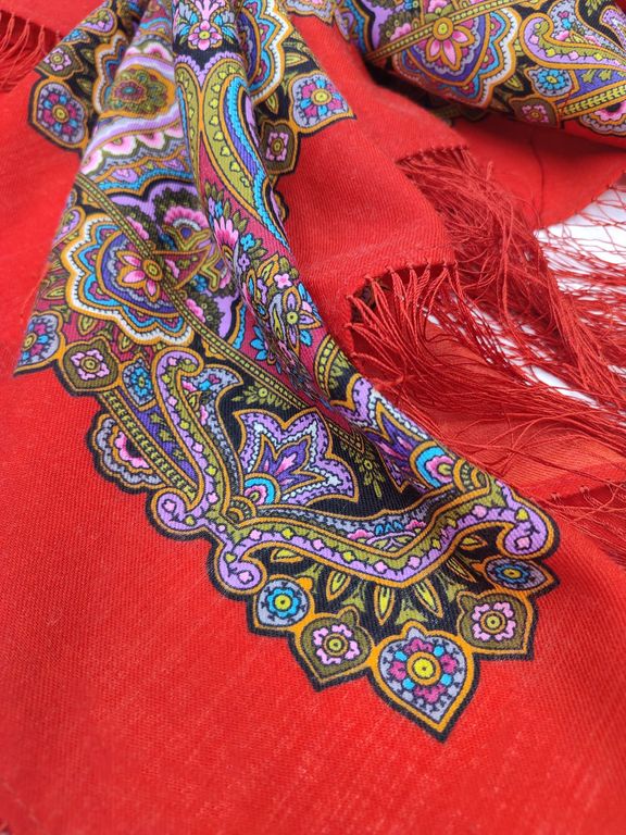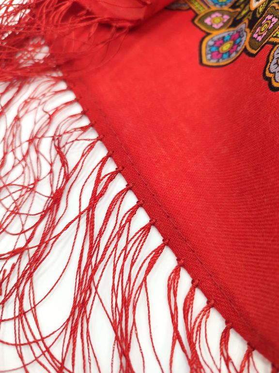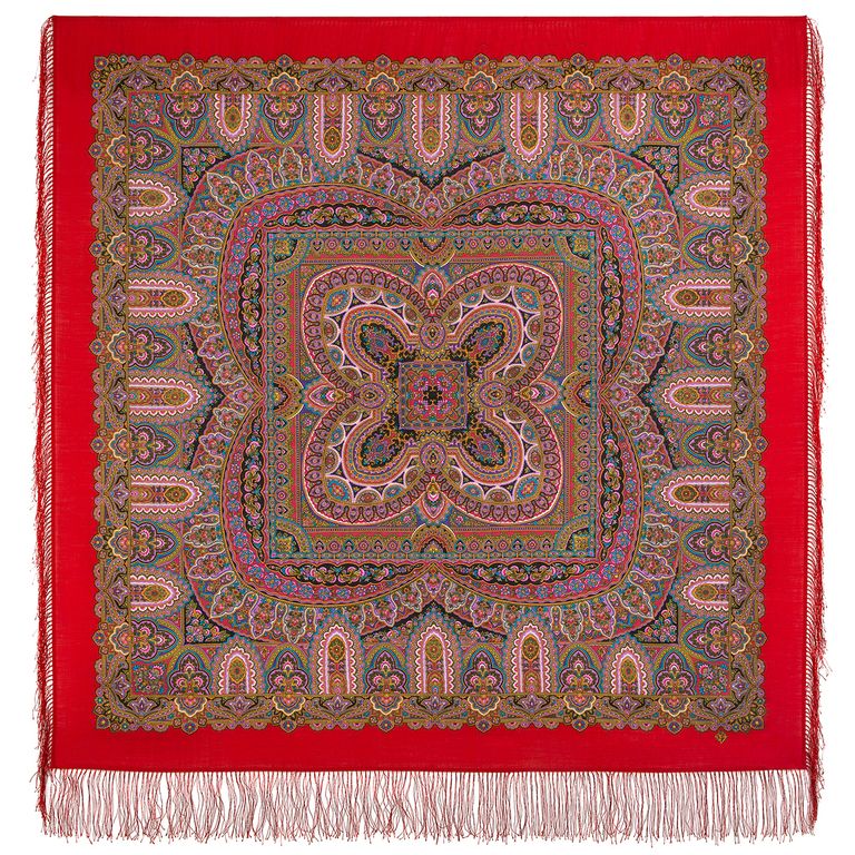 Павловопосадский шерстяной платок "Пряничный домик" 1903-5, с шёлковой бахромой