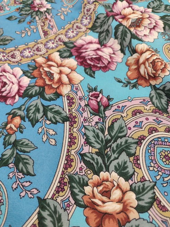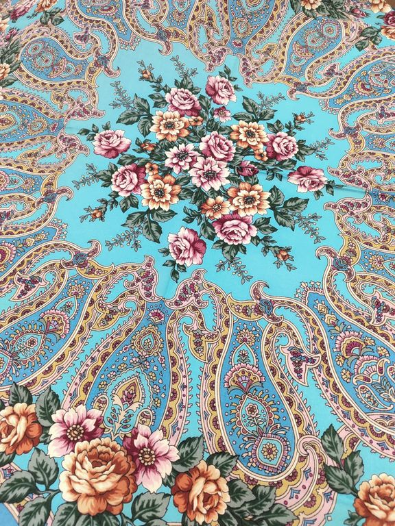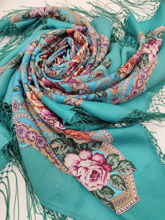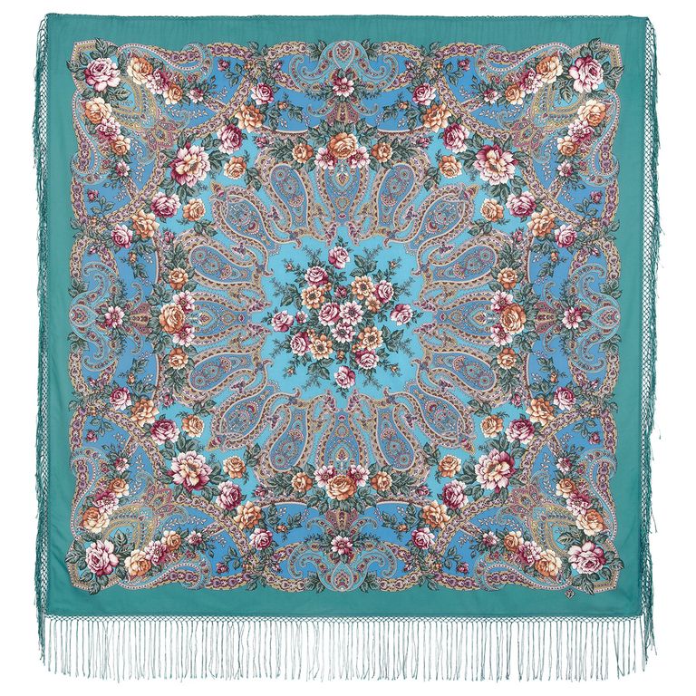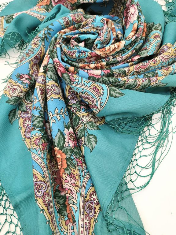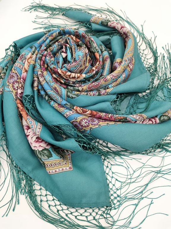 Павловопосадский шерстяной платок с вязаной вручную бахромой "Река любви" арт. 1773-11