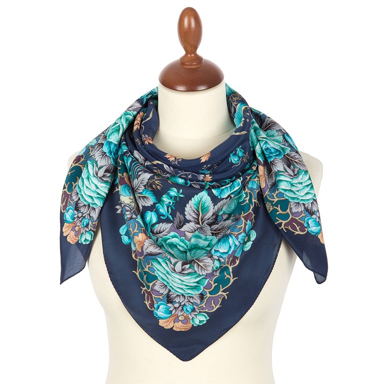 Павловопосадский шёлковый платок Россияночка 1740-14 без бахромы