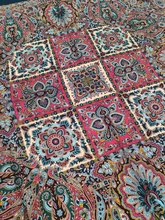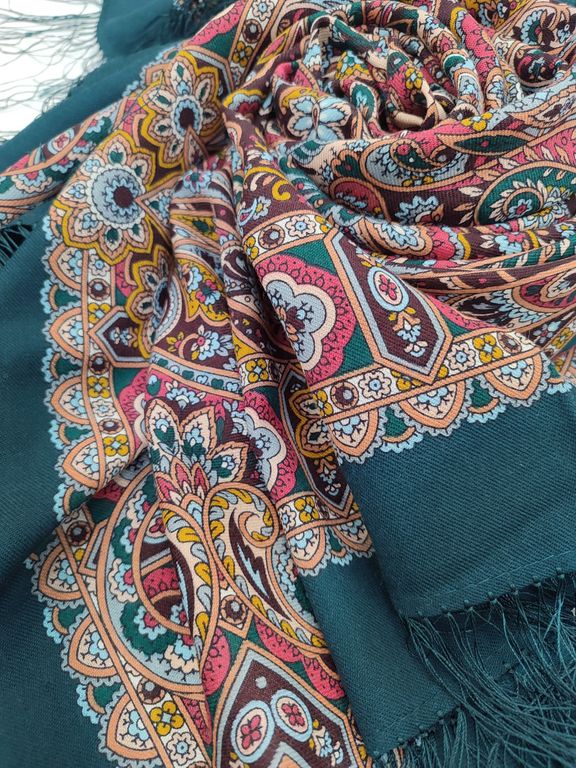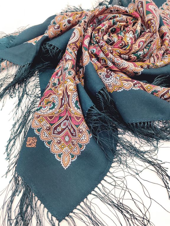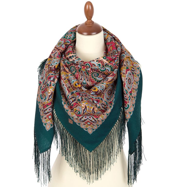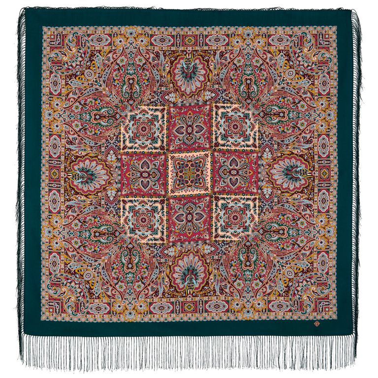Павловопосадский шерстяной платок "Рождественский пряник" 1805-12, с шёлковой бахромой