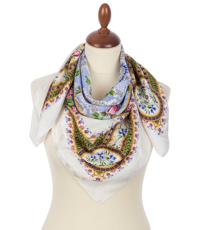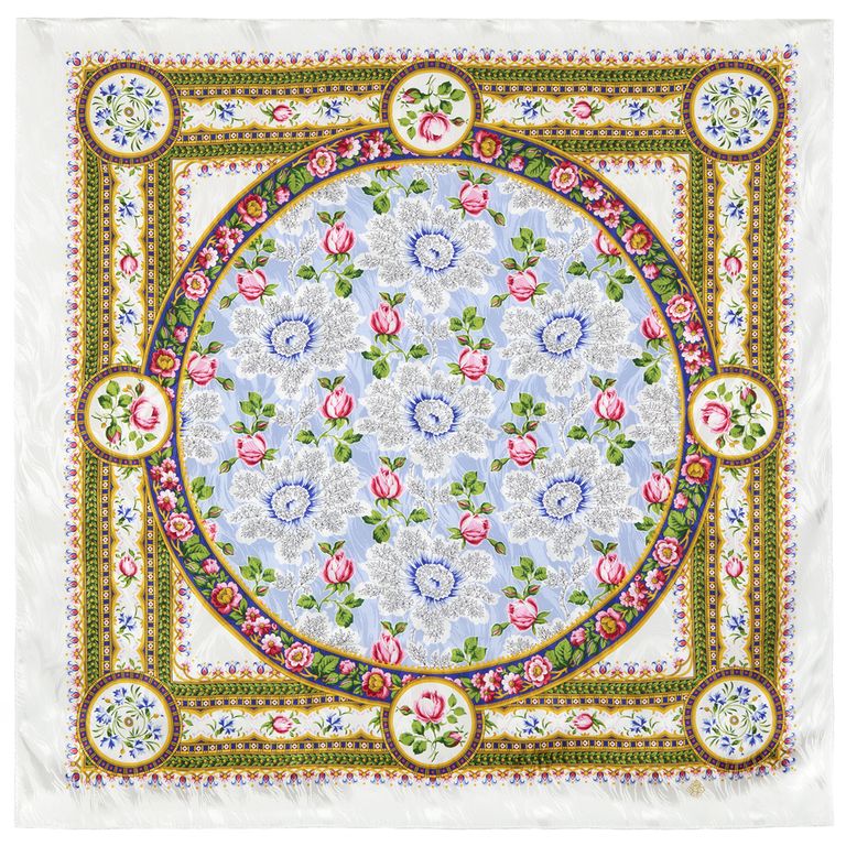 Павловопосадский шёлковый платок без бахромы Северные цветы 736-1