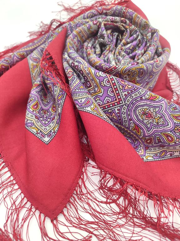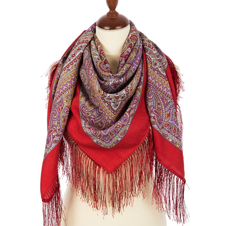 Павловопосадский шерстяной платок "Северянка" 1625-4, с шёлковой бахромой