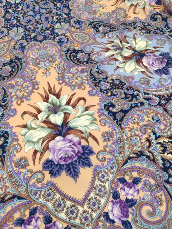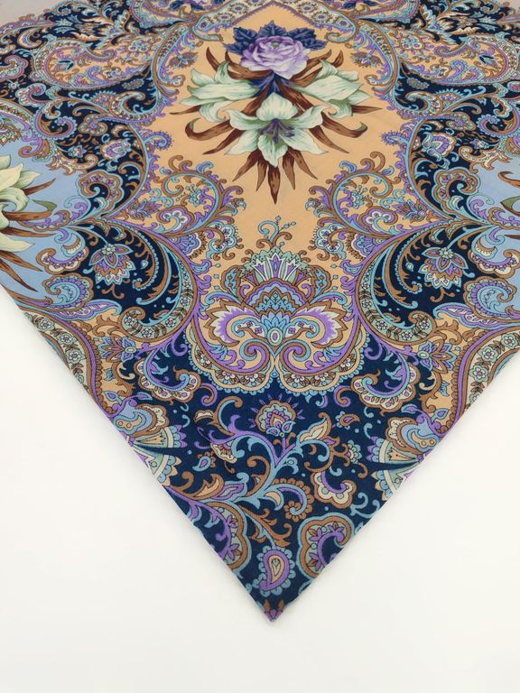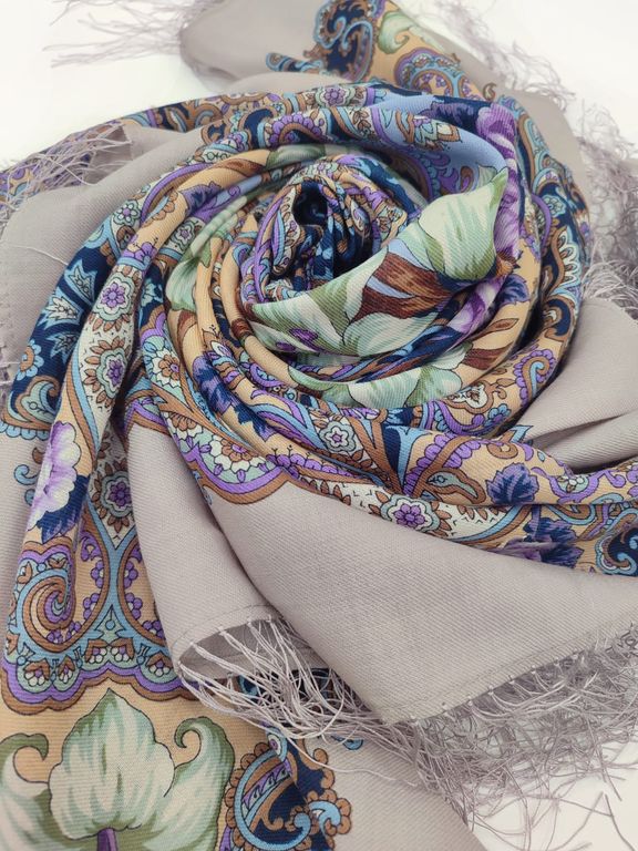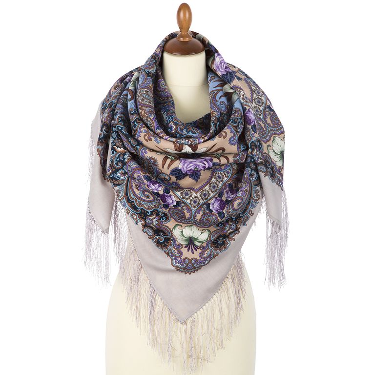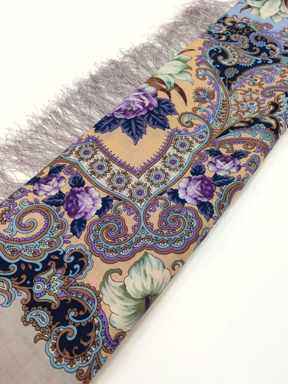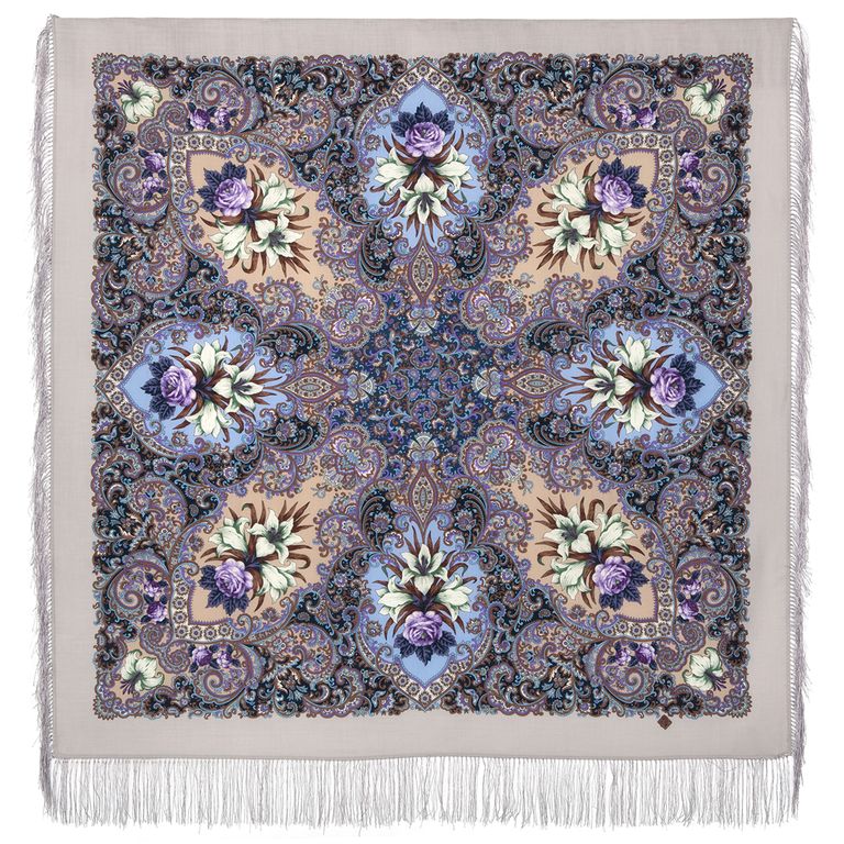 Павловопосадский шерстяной платок "Сказки летней ночи" 1862-2, с шёлковой бахромой