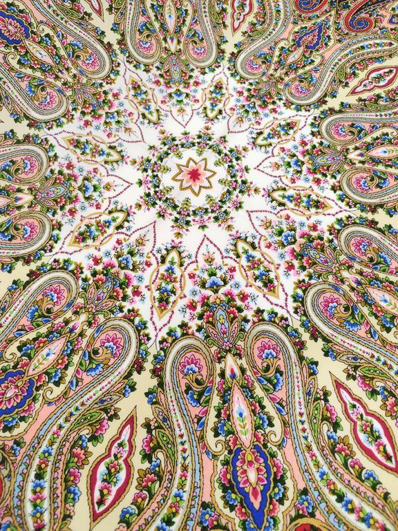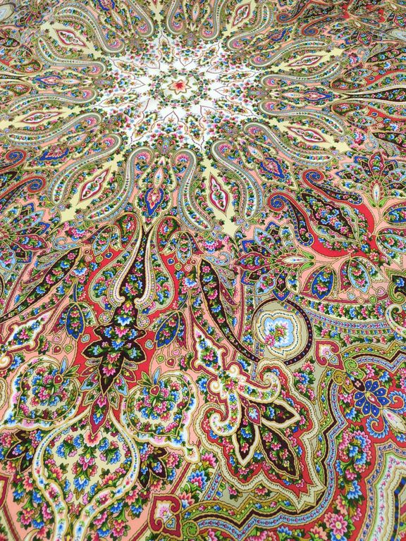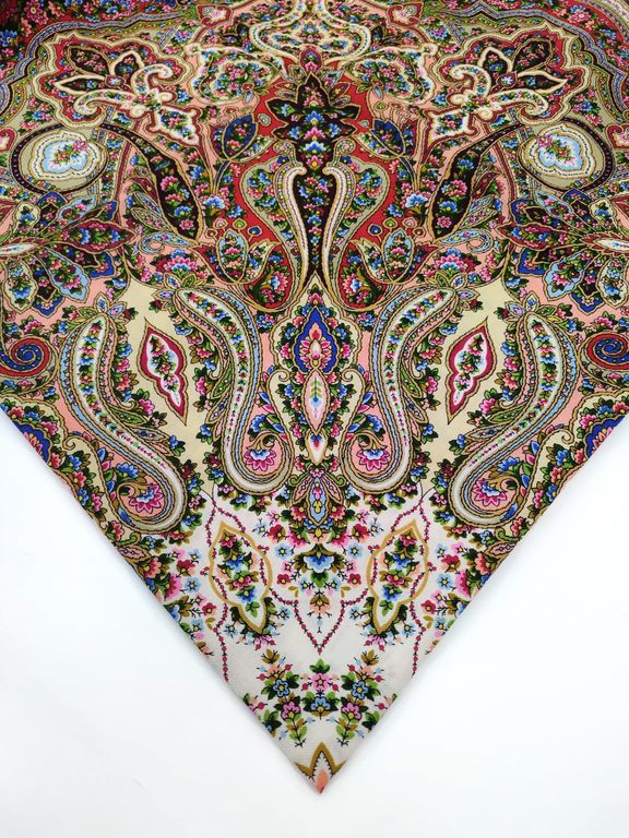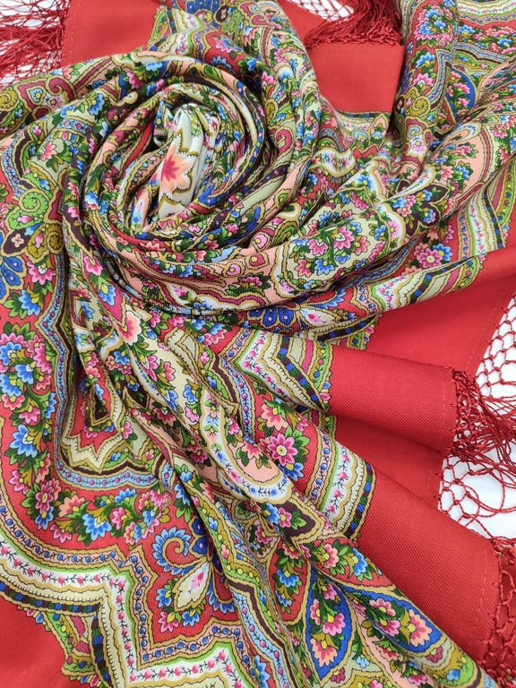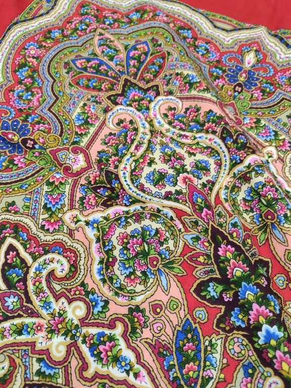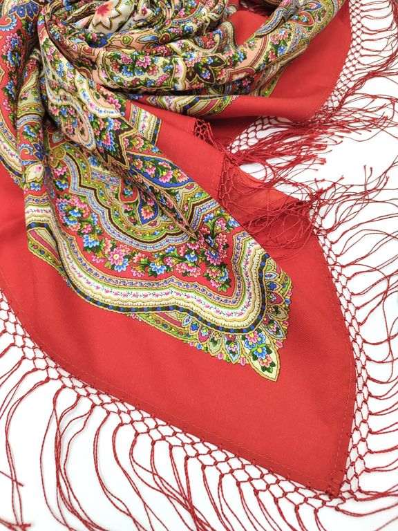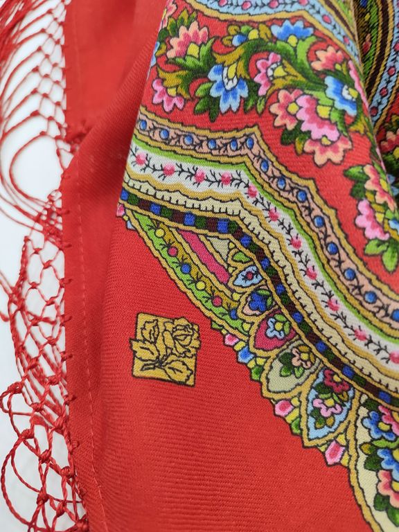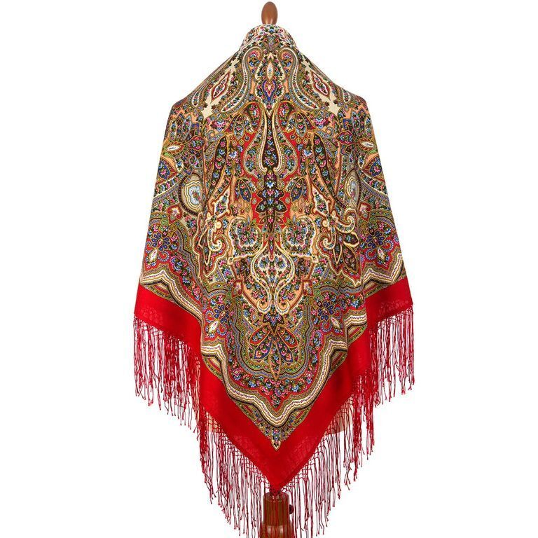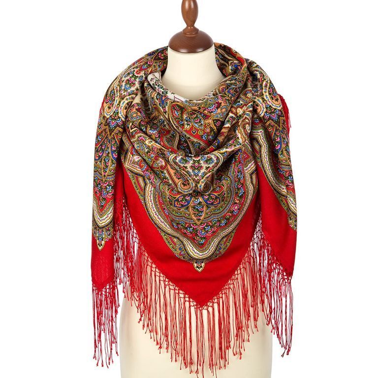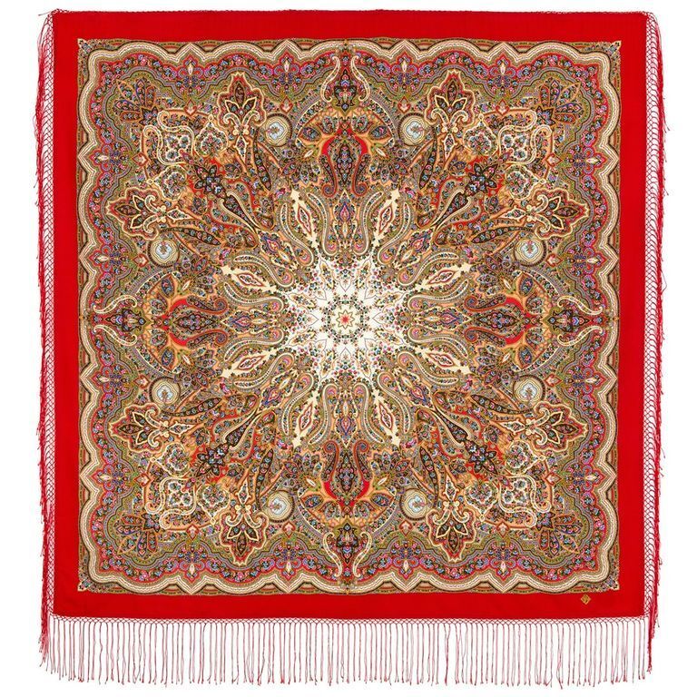 Павловопосадский шерстяной платок с вязаной вручную бахромой "Сказочница" арт. 1763-5