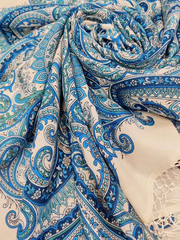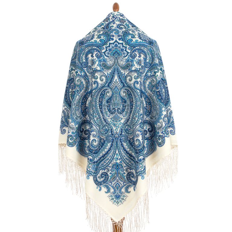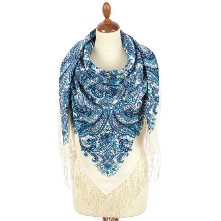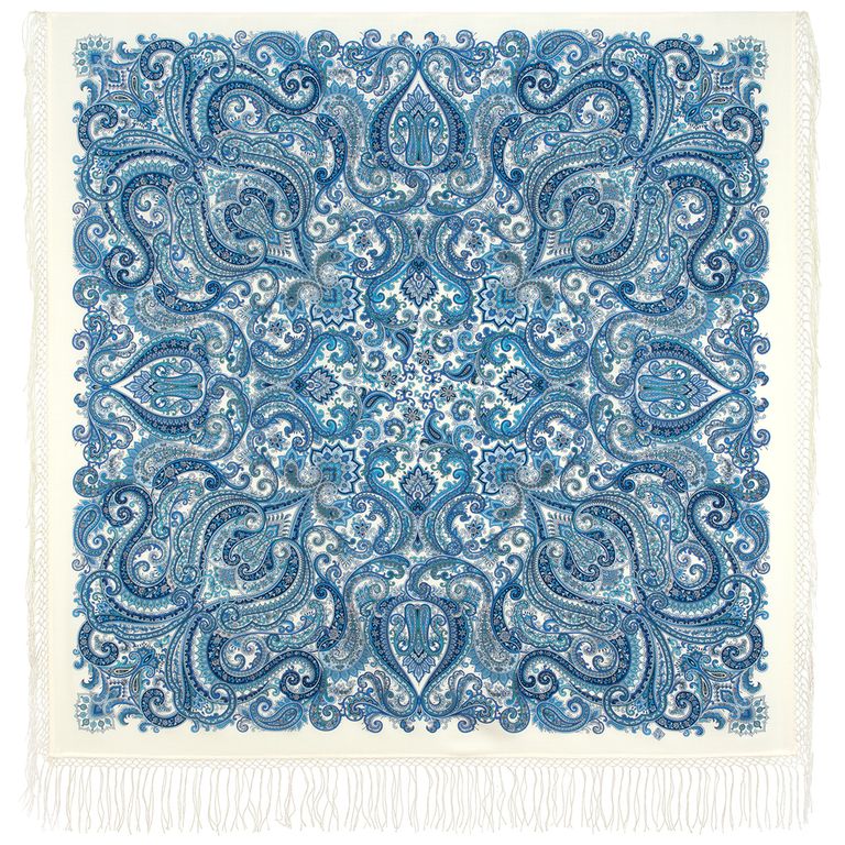 Павловопосадский шерстяной платок "Сказочное путешествие" 2012-1, с вязаной вручную бахромой