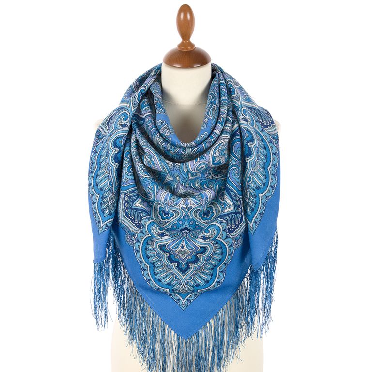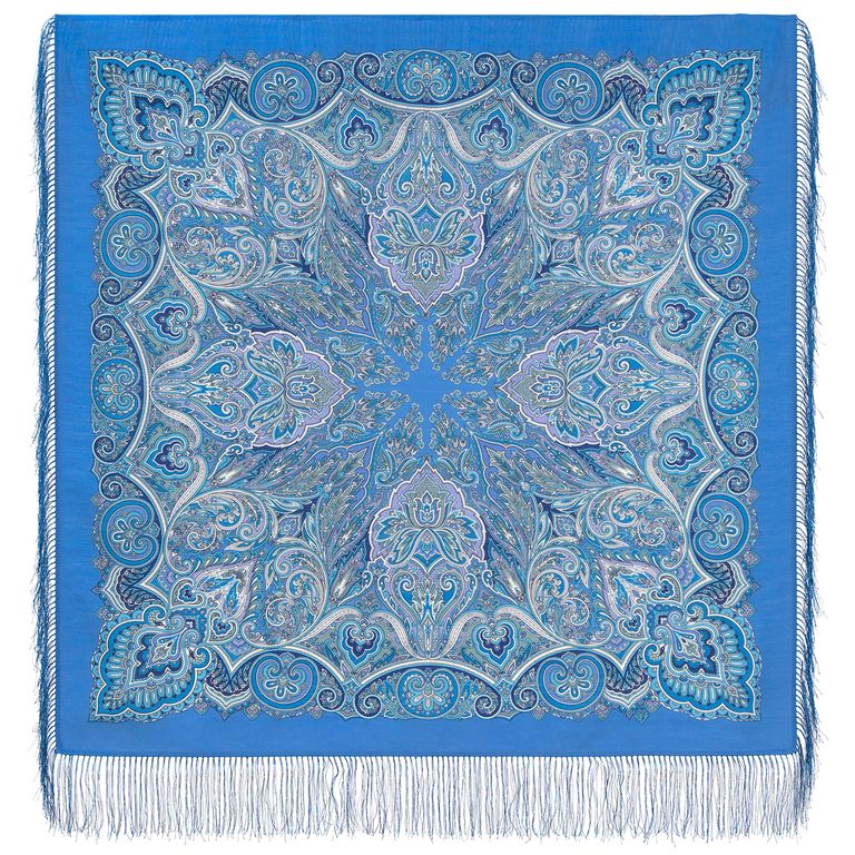 Павловопосадский шерстяной платок "Сказочный декабрь" 2123-13, с шёлковой бахромой