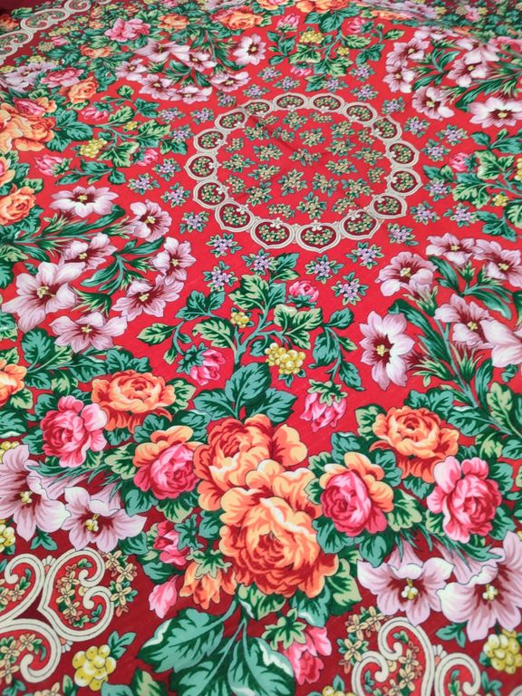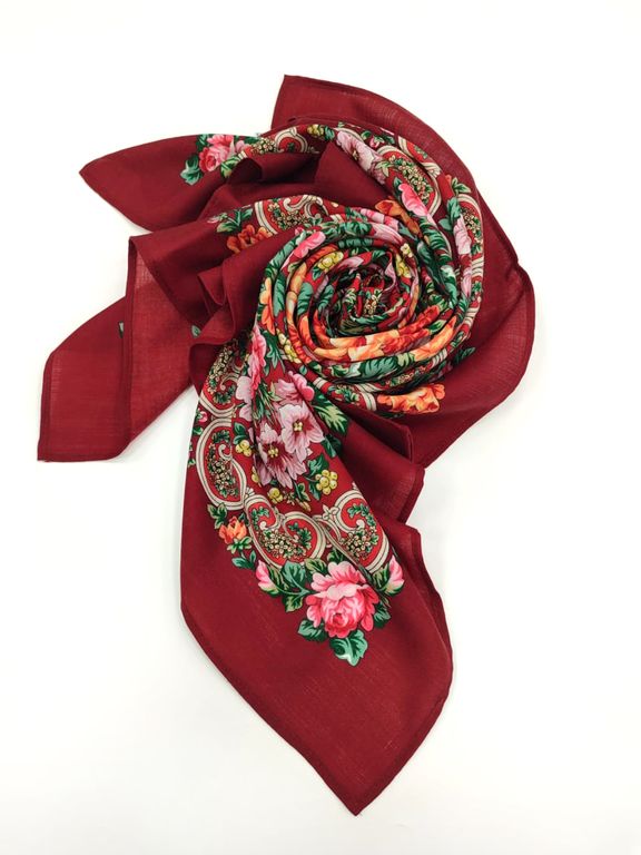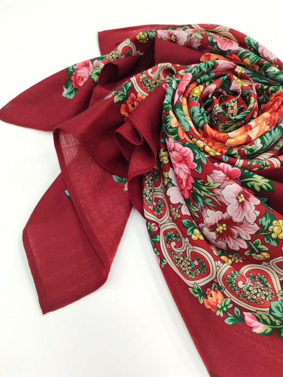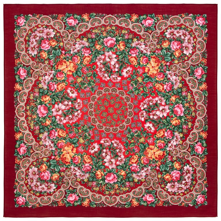 Павловопосадский шерстяной платок "Солнечный круг" арт. 2037-6 без бахромы
