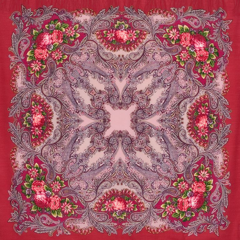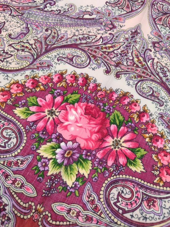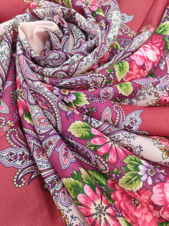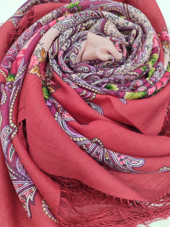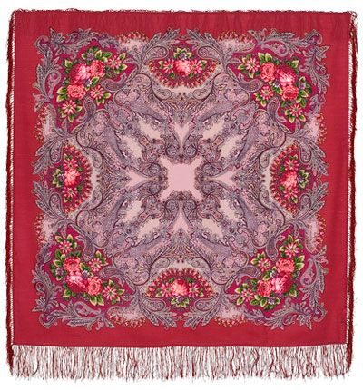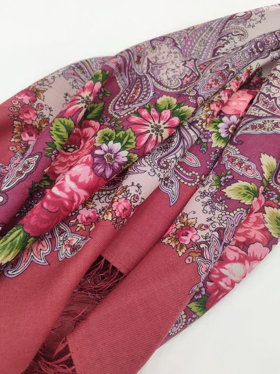 Павловопосадский шерстяной платок "Сон бабочки" 1463-4, с шелковой бахромой