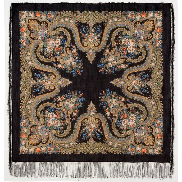 Павловопосадский шерстяной платок "У камина" арт. 1154-19, с шёлковой бахромой