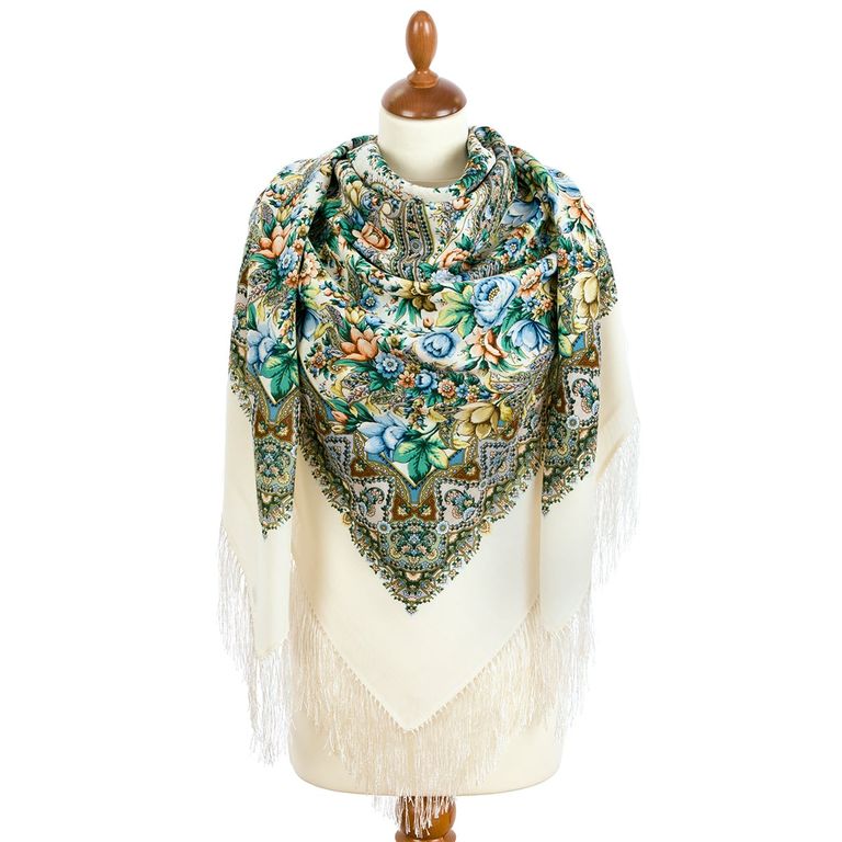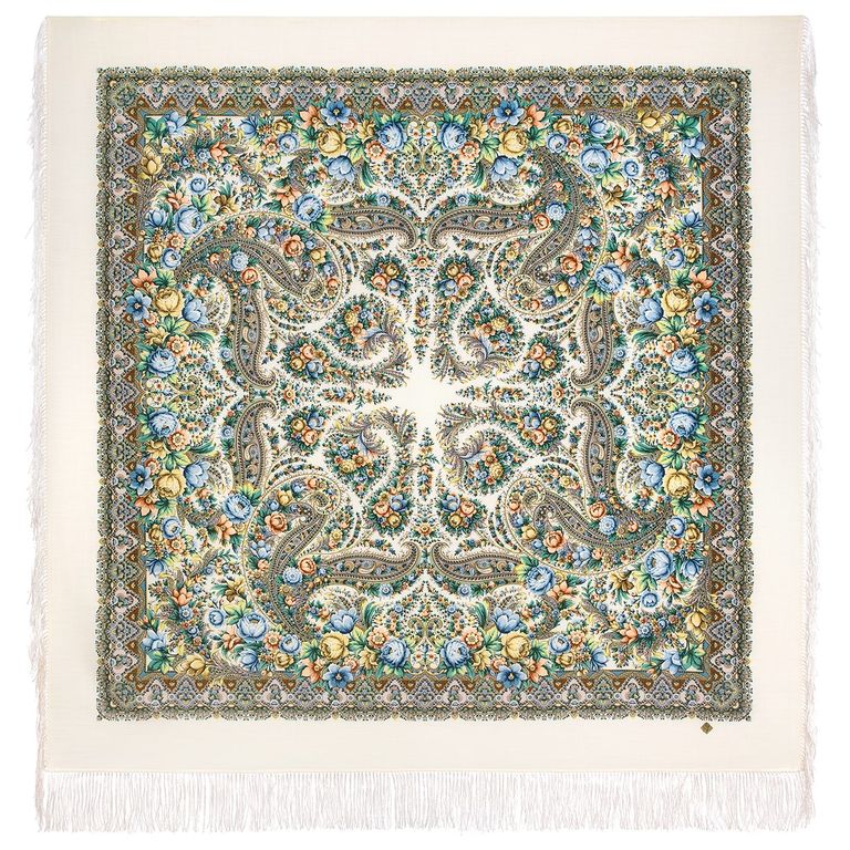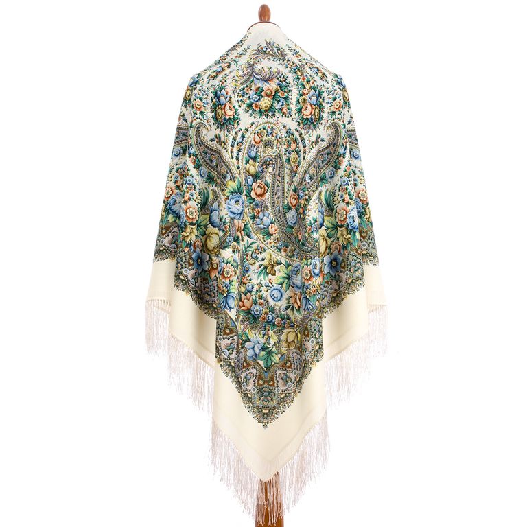 Павловопосадский шерстяной платок "Утро туманное" 1899-1, с шелковой бахромой