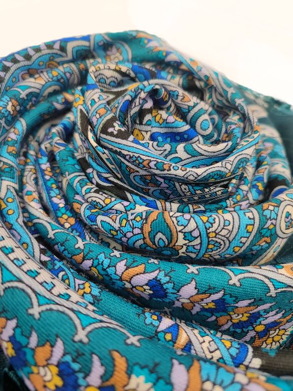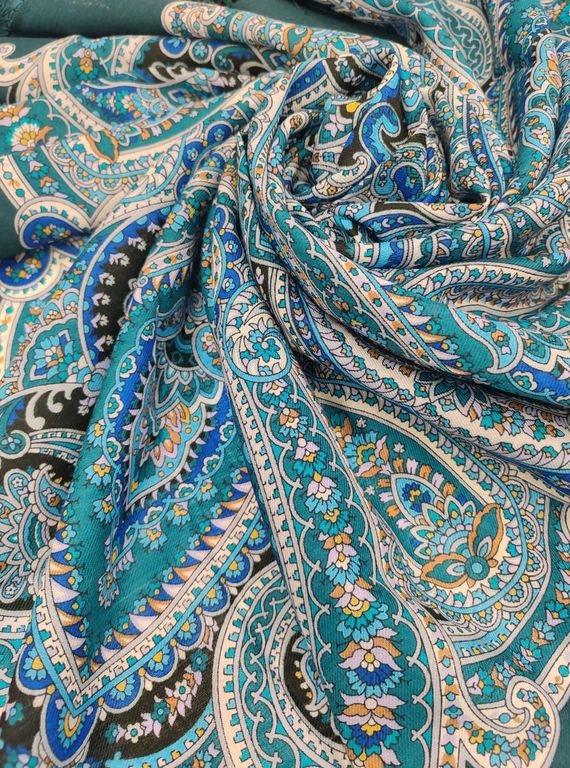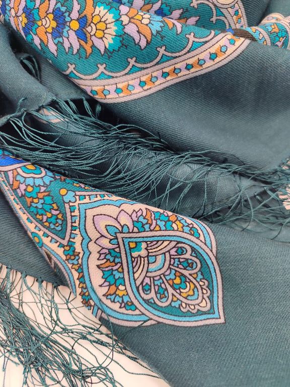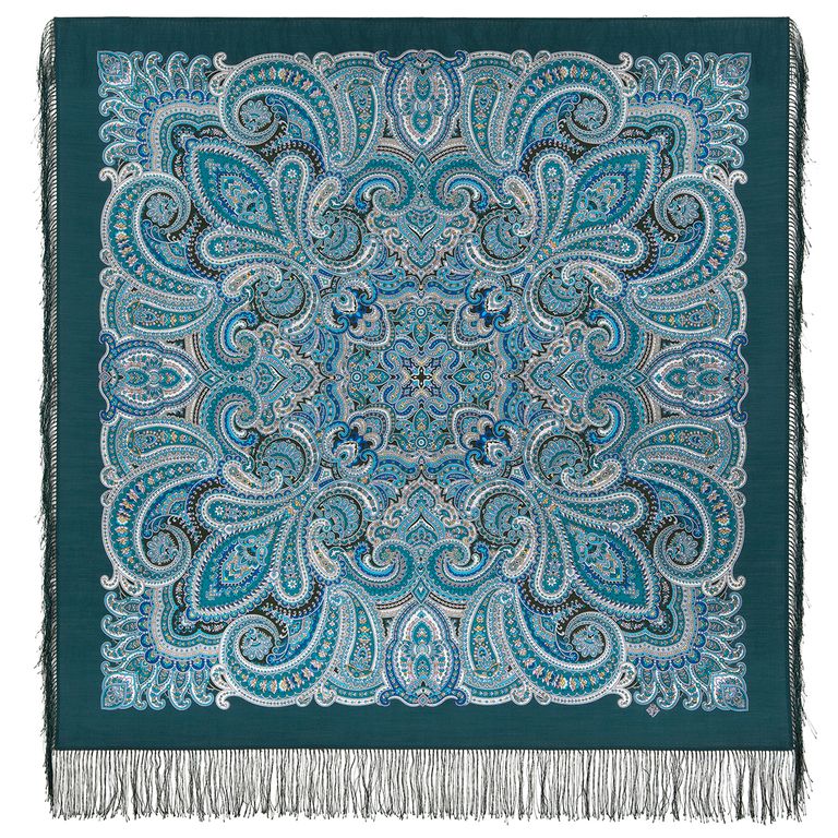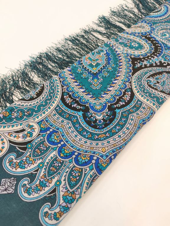 Павловопосадский шерстяной платок "В ожидании праздника" 1895-12, с шёлковой бахромой