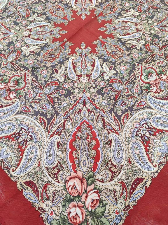 Павловопосадский шерстяной платок "Вечер над Вохной" 1946-6