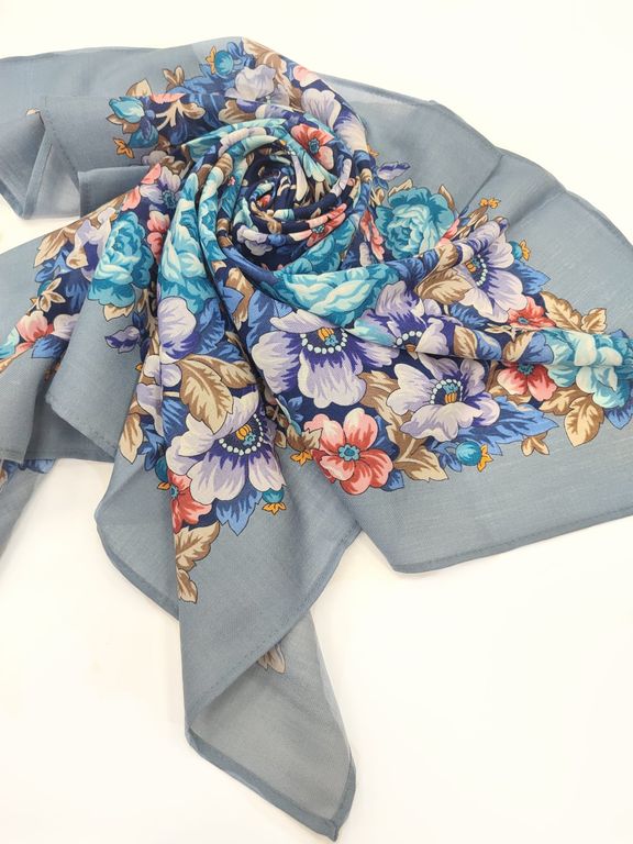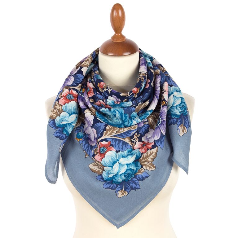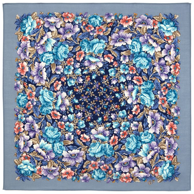 Павловопосадский шерстяной платок "Волшебная ночь" арт. 2002-1, без бахромы