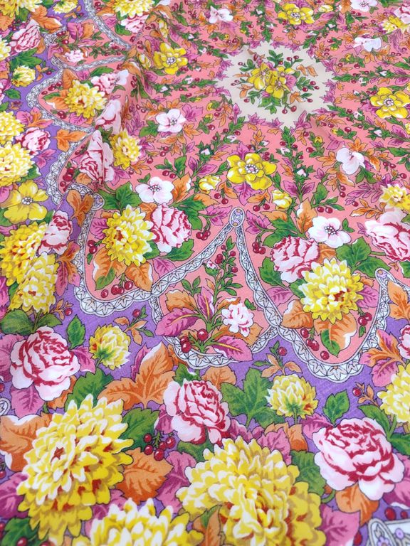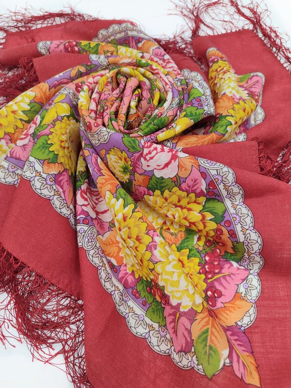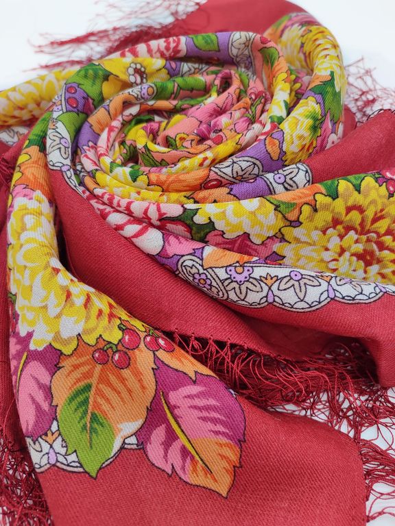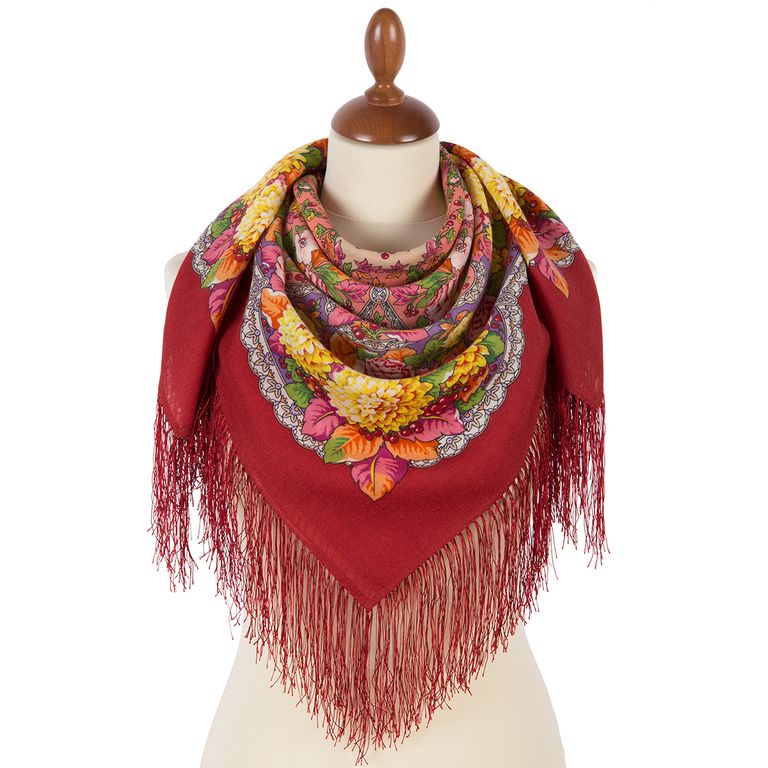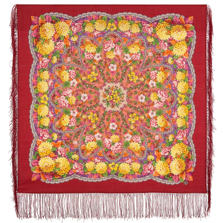 Павловопосадский шерстяной платок "Восходящее солнце" арт. 1920-5