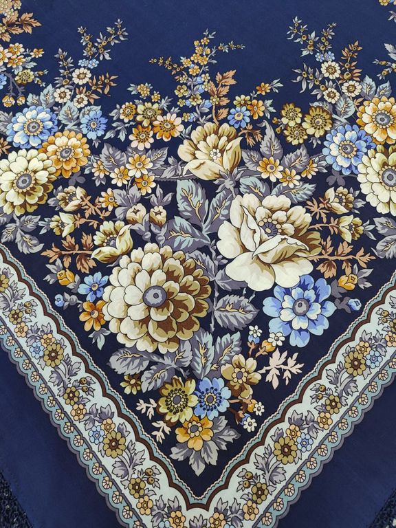 Данное изделие продолжает нашу новую линейку - линию коллекционных платков. Выпуск таких изделий рассчитан в первую очередь на коллекционеров и знатоков павловопосадского промысла, которым могут быть интересны уникальные платки, давно снятые с производства или совсем ранее не выпускавшиеся.