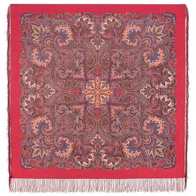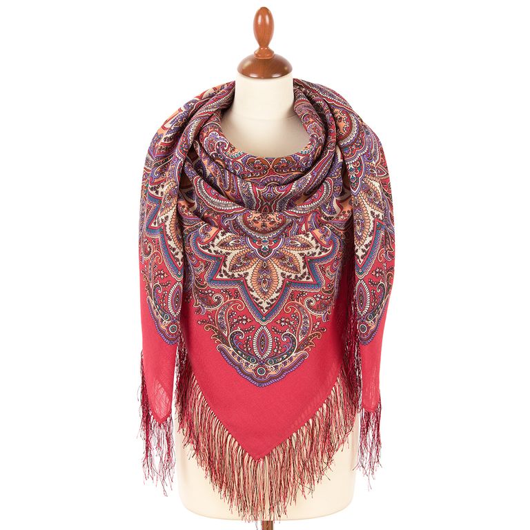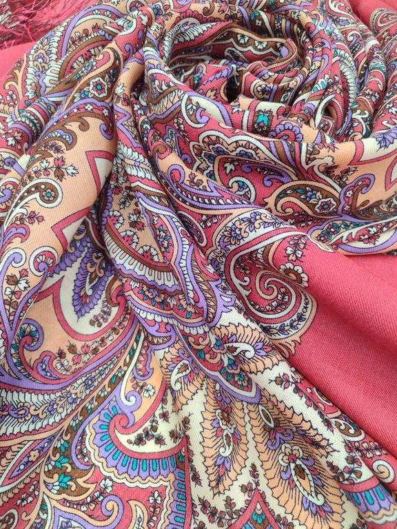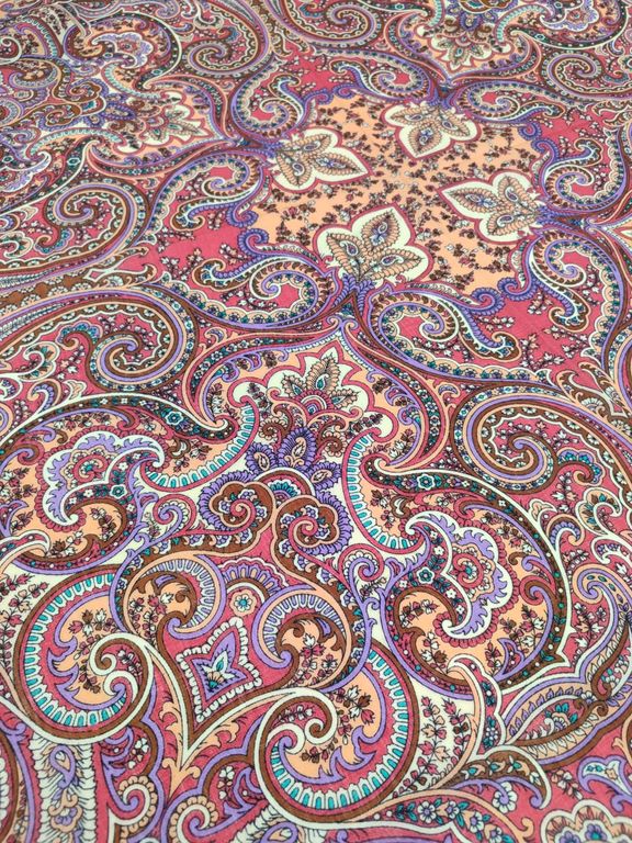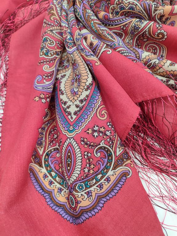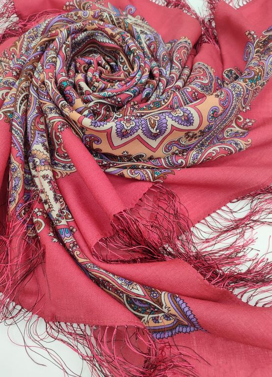 Павловопосадский шерстяной платок "Ясно солнышко" 1935-56, с шелковой бахромой