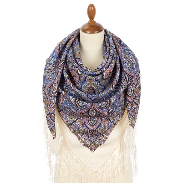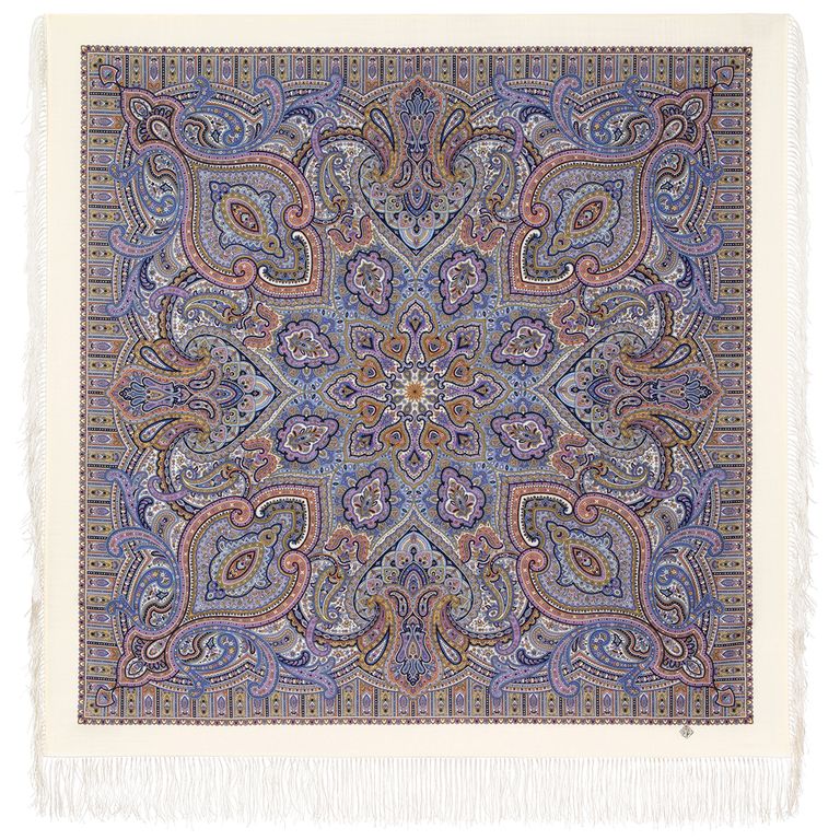 Павловопосадский шерстяной платок "Заряночка" 2044-0 (Б), с шёлковой бахромой